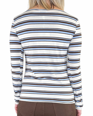 Maglia morbida, divertente con le sue righe e bell'abbinamento di colori. Vestibilità over ma non esagerata