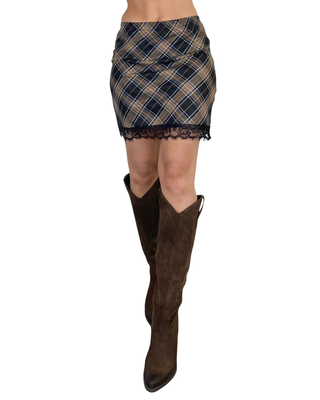 Susy Mix - Minigonna scozzese pizzo - NERO