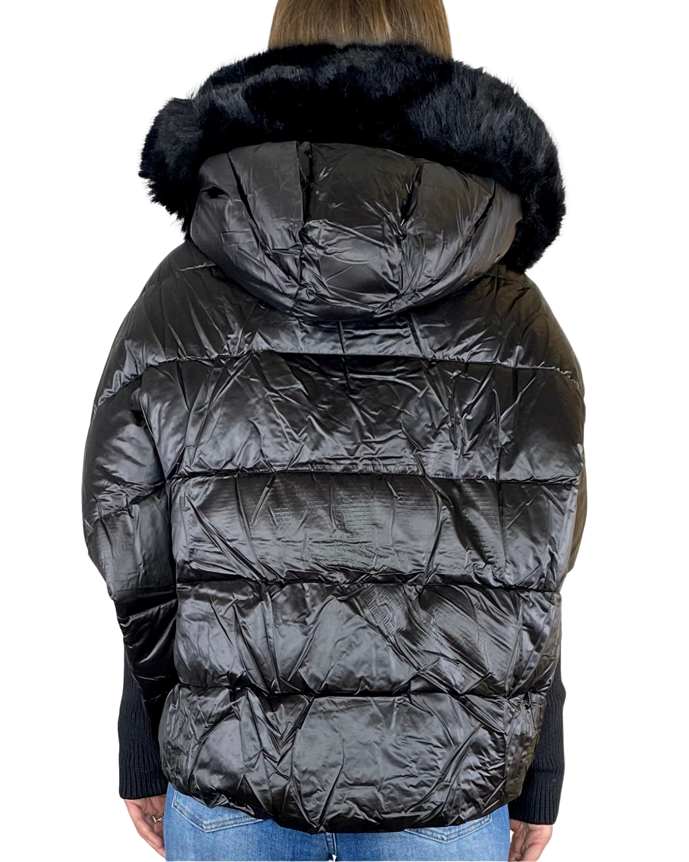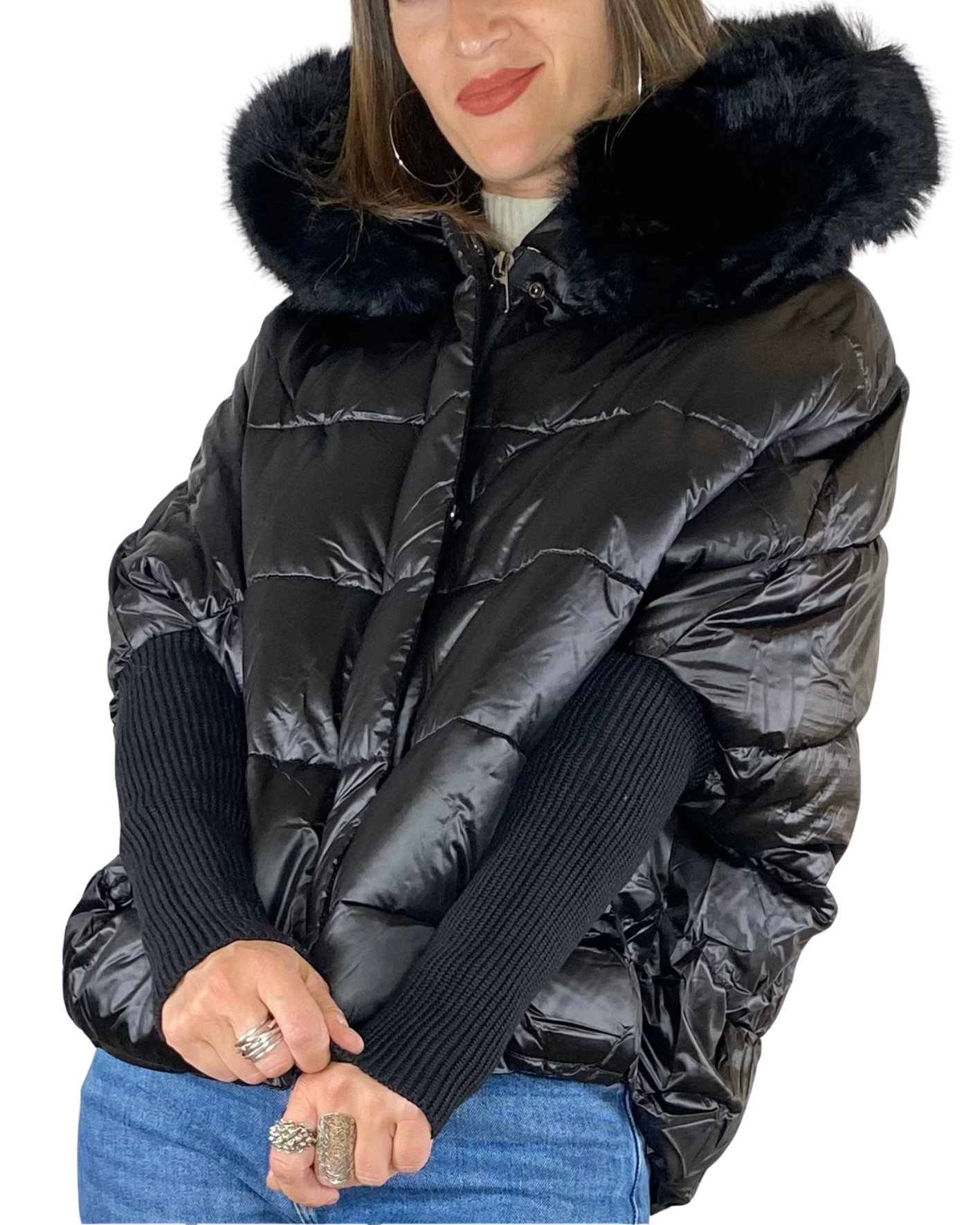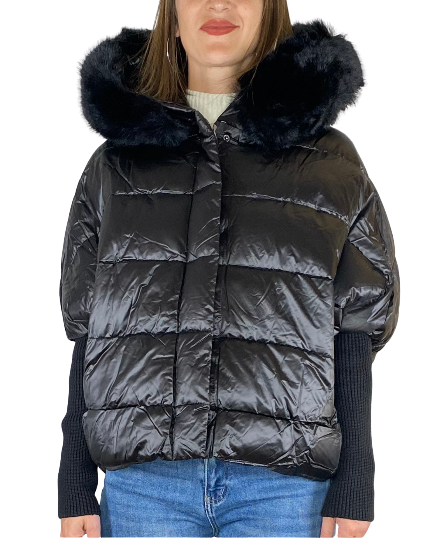 Cappa imbottita con manicotto cappuccio con ecopelliccia staccabile
