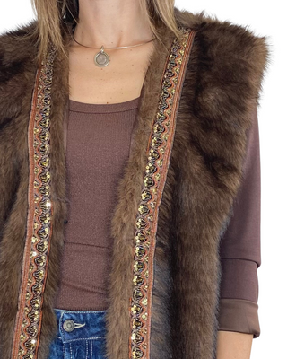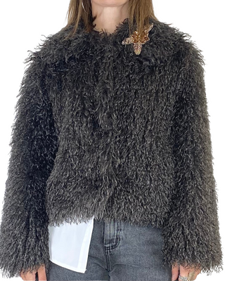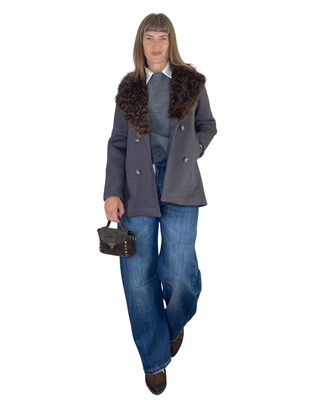 motel - cappottino doppiopetto spinato collo ecopelliccia - senape