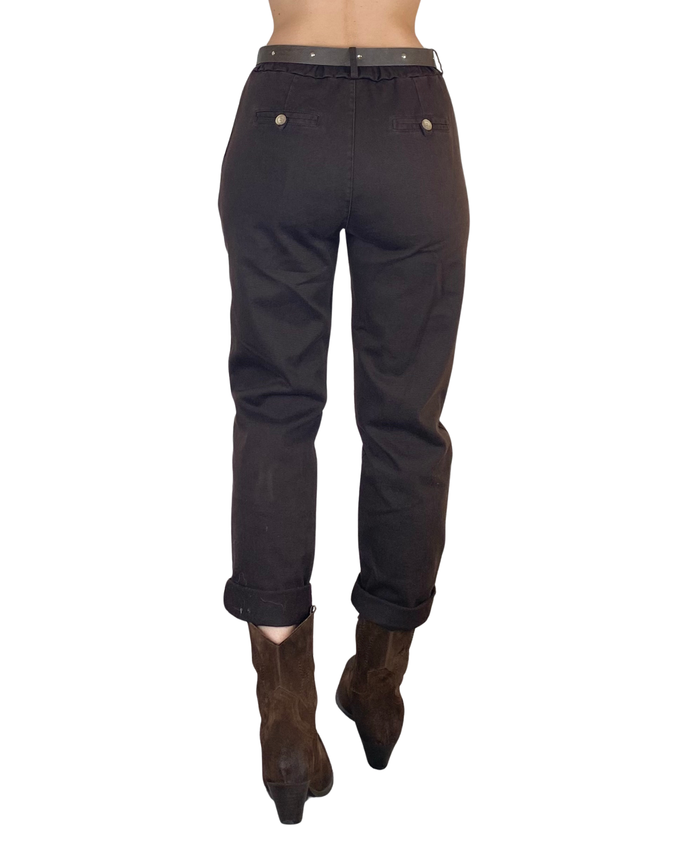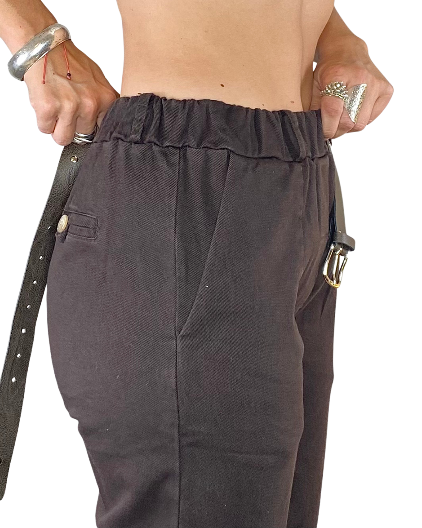 Pantalone bull denim boyfriend elastico in vita tasche alla francese cintura