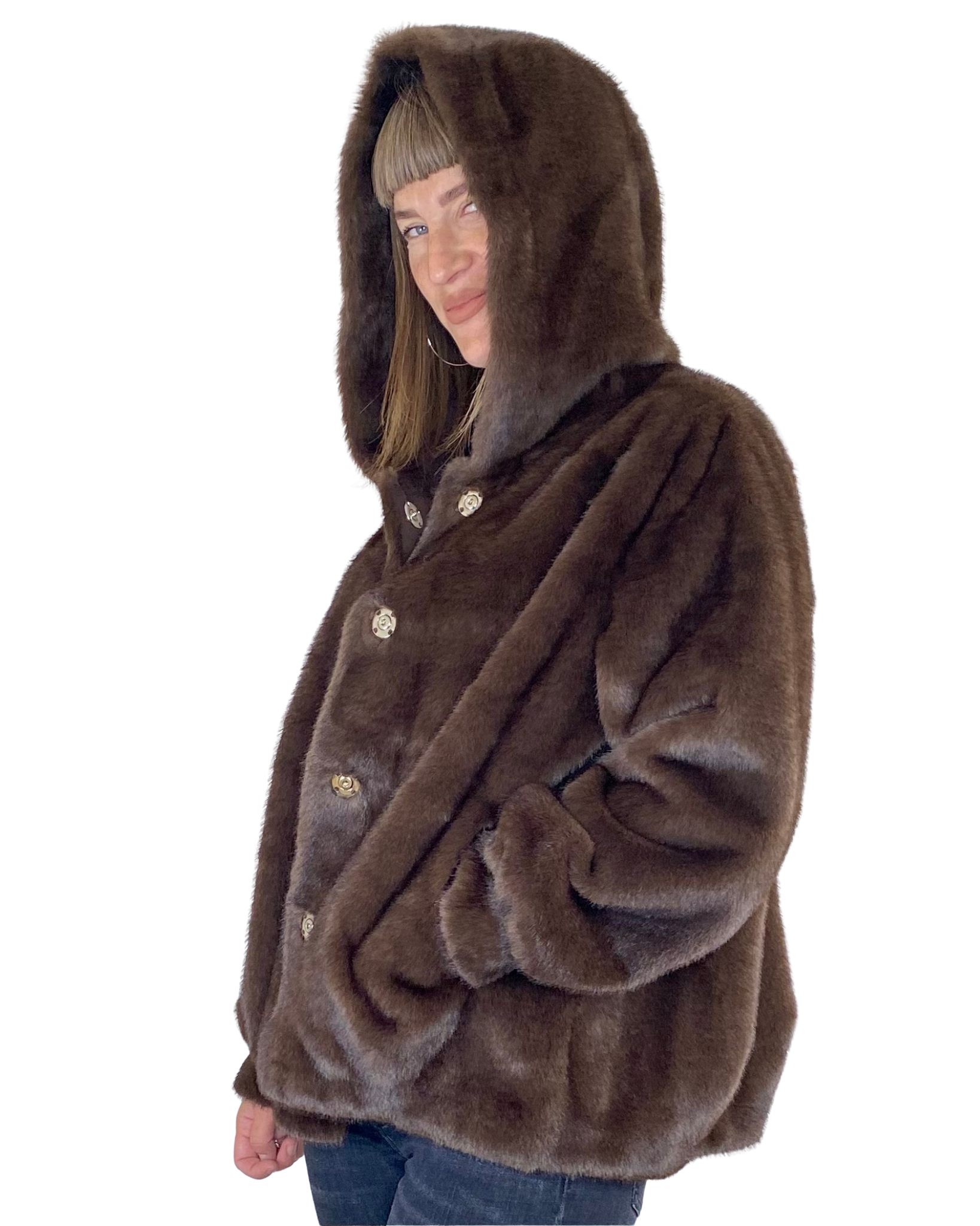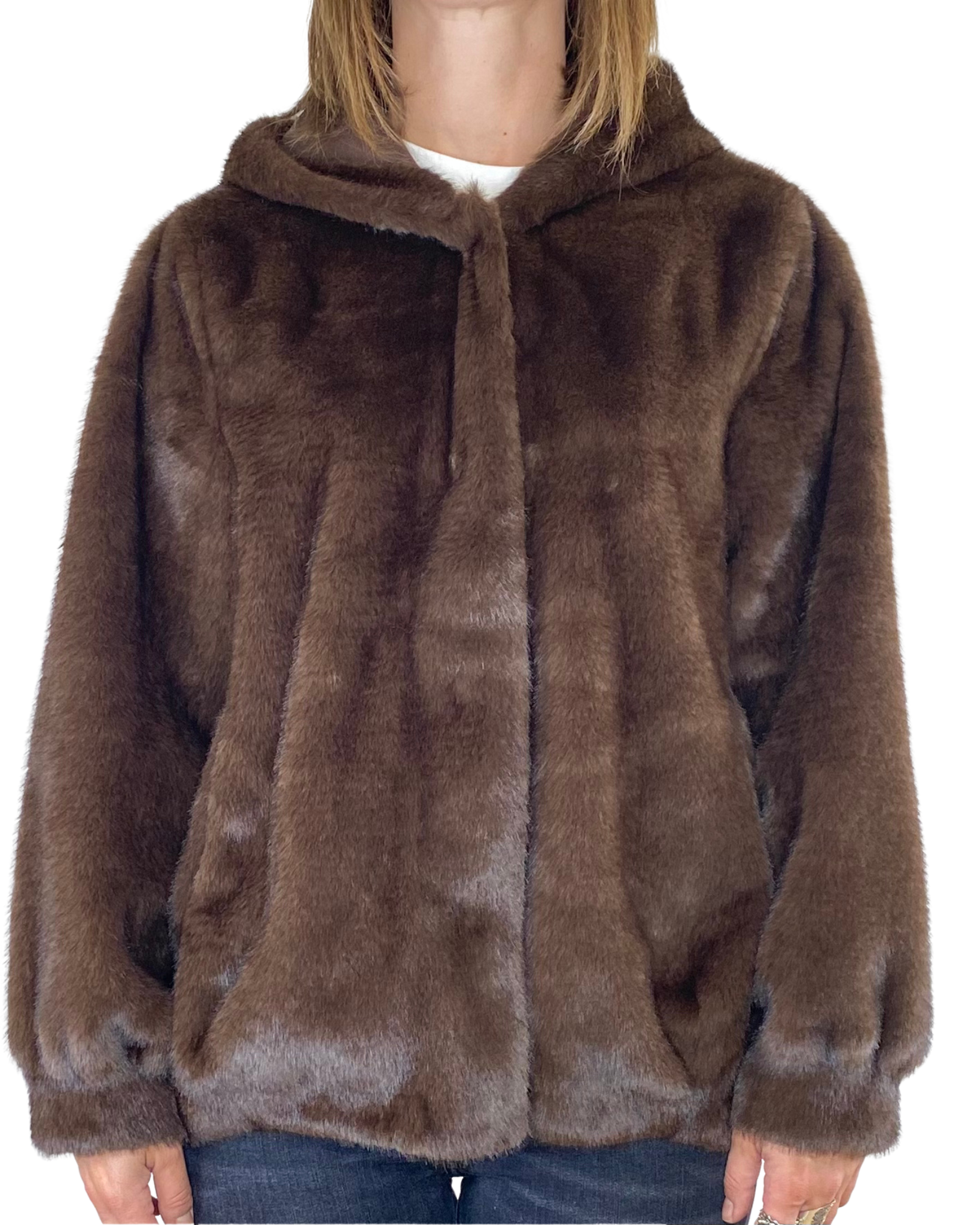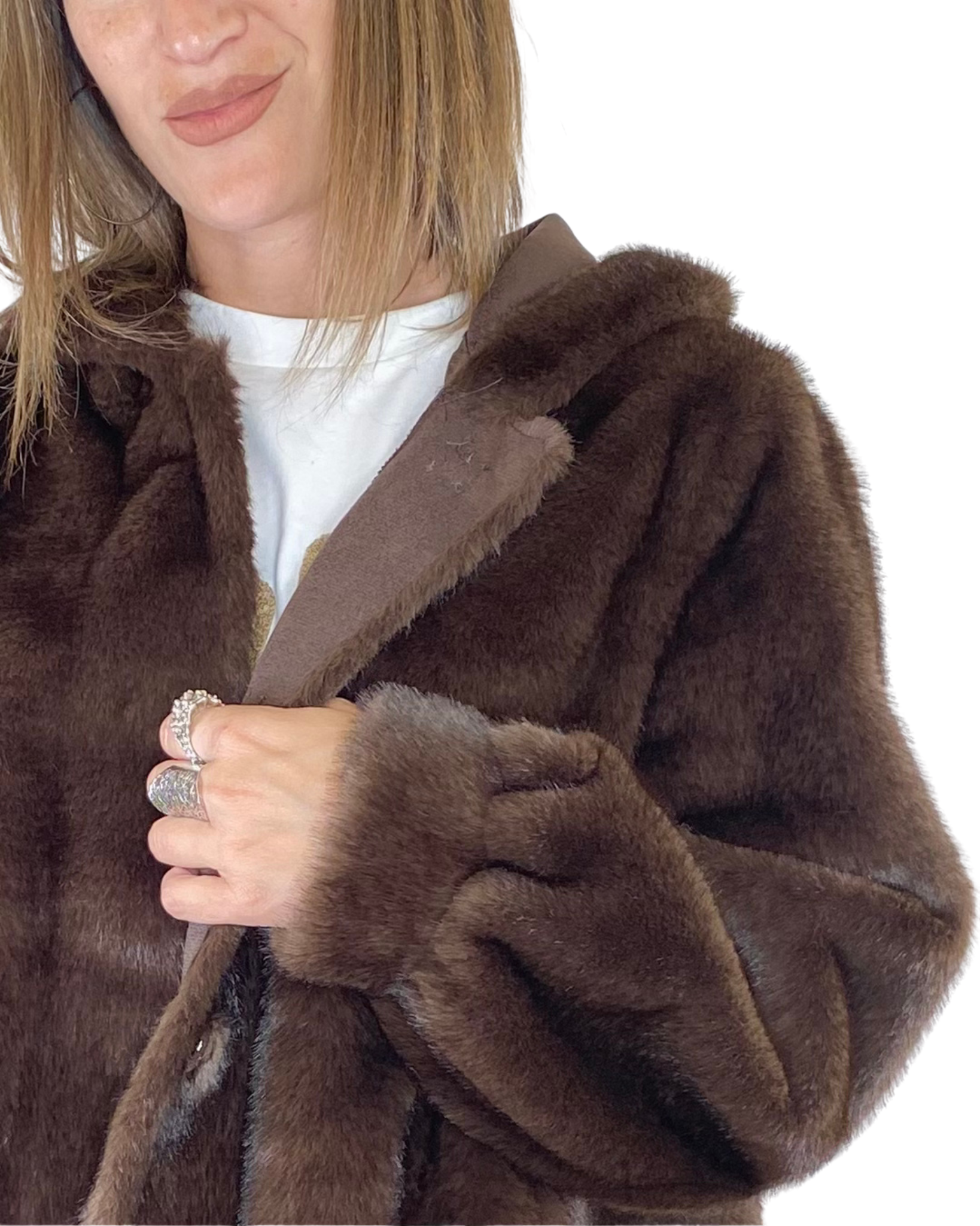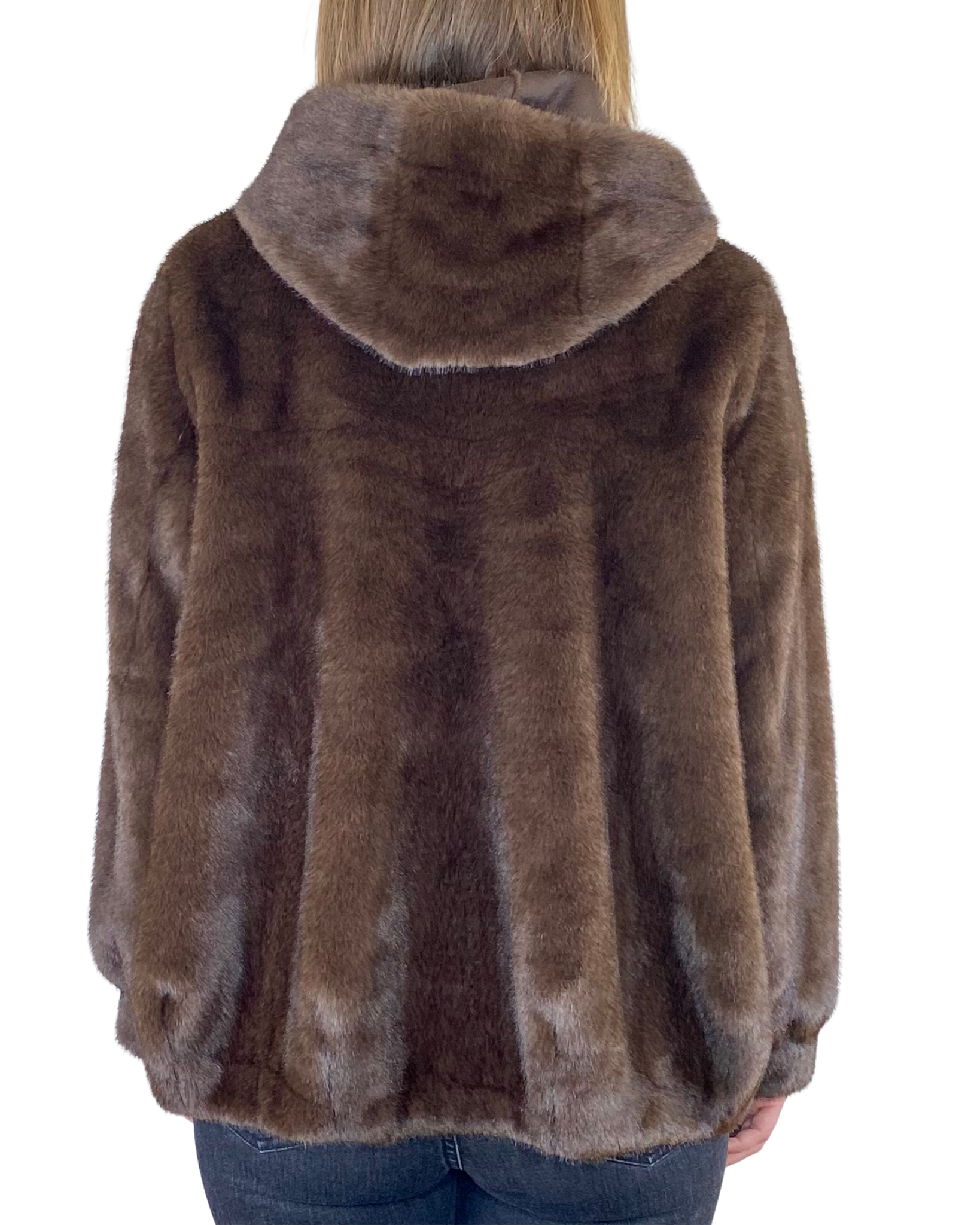 Susy Mix - Ecopelliccia stondata con cappuccio - MORO