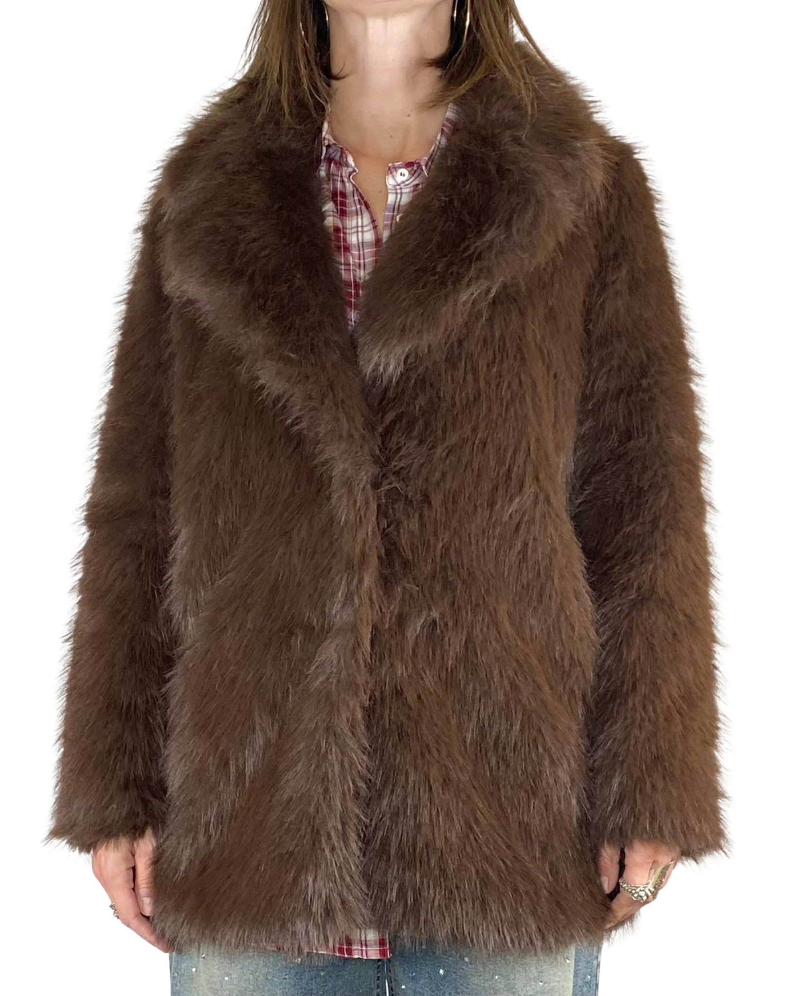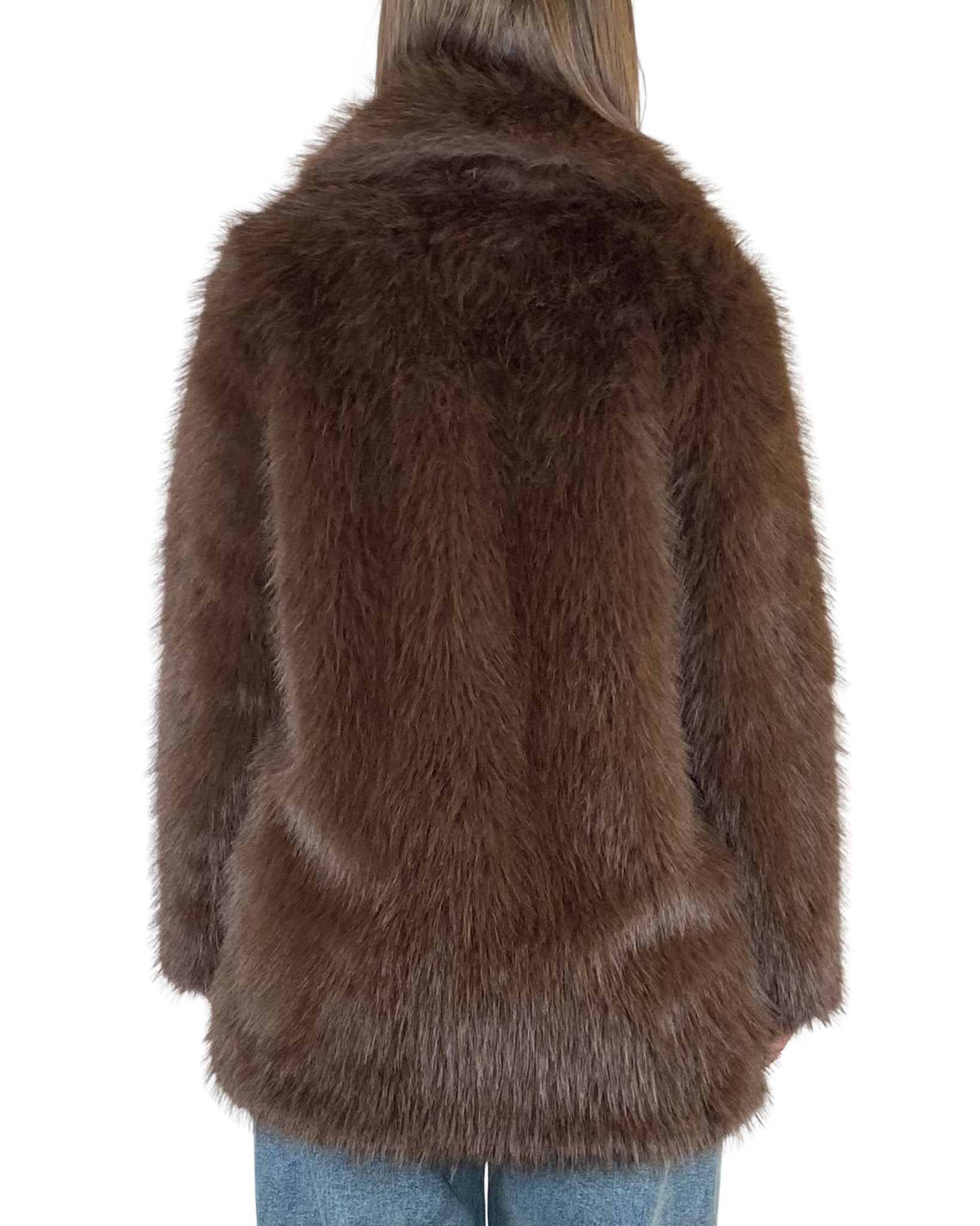 Ecopelliccia al fianco con tasche e chiusura con automatici