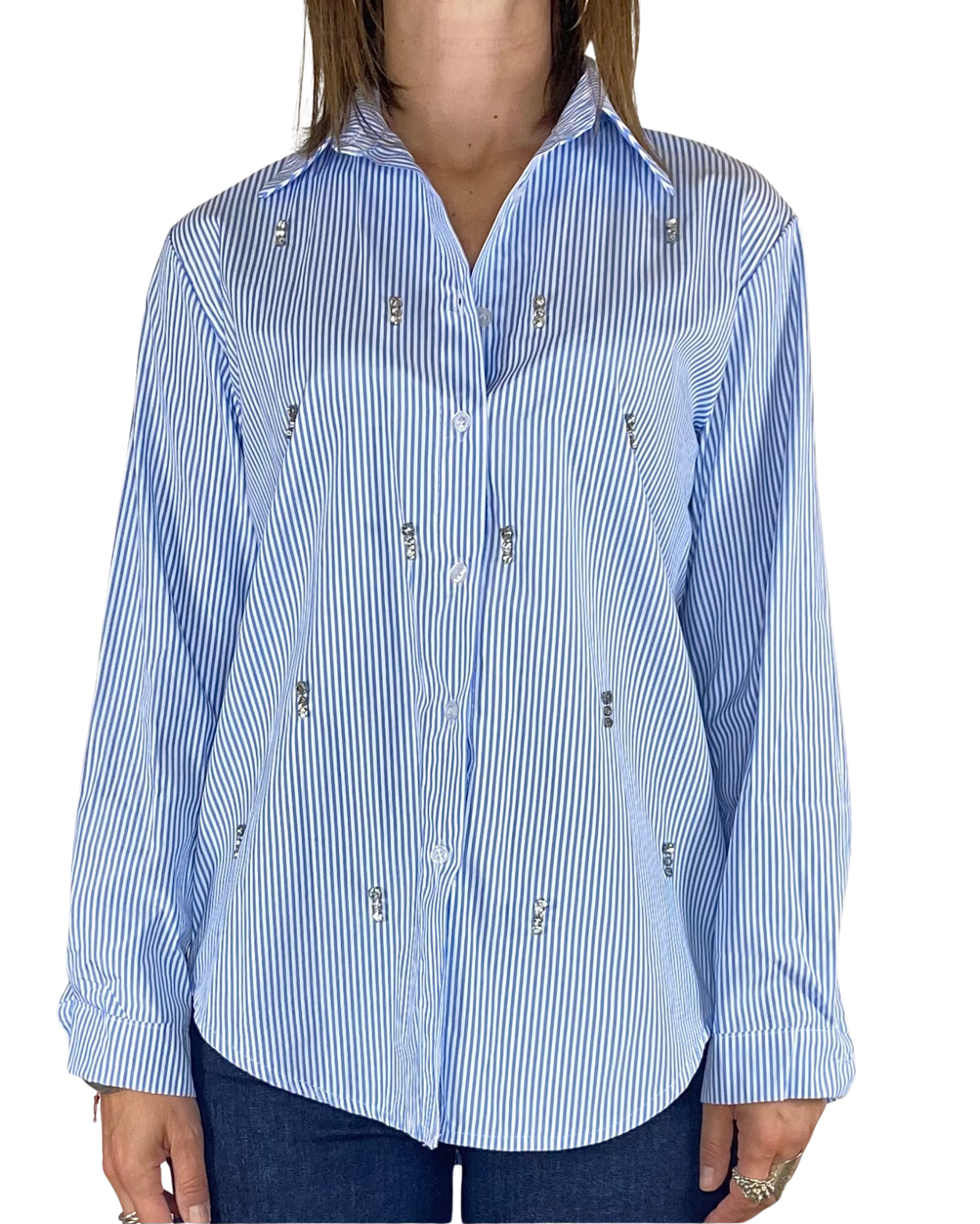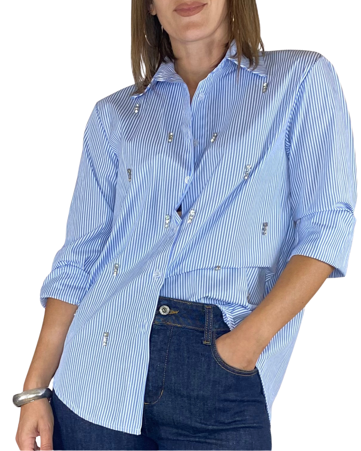 Habiti - Camicia bastoncino cabochon - AZZURRO