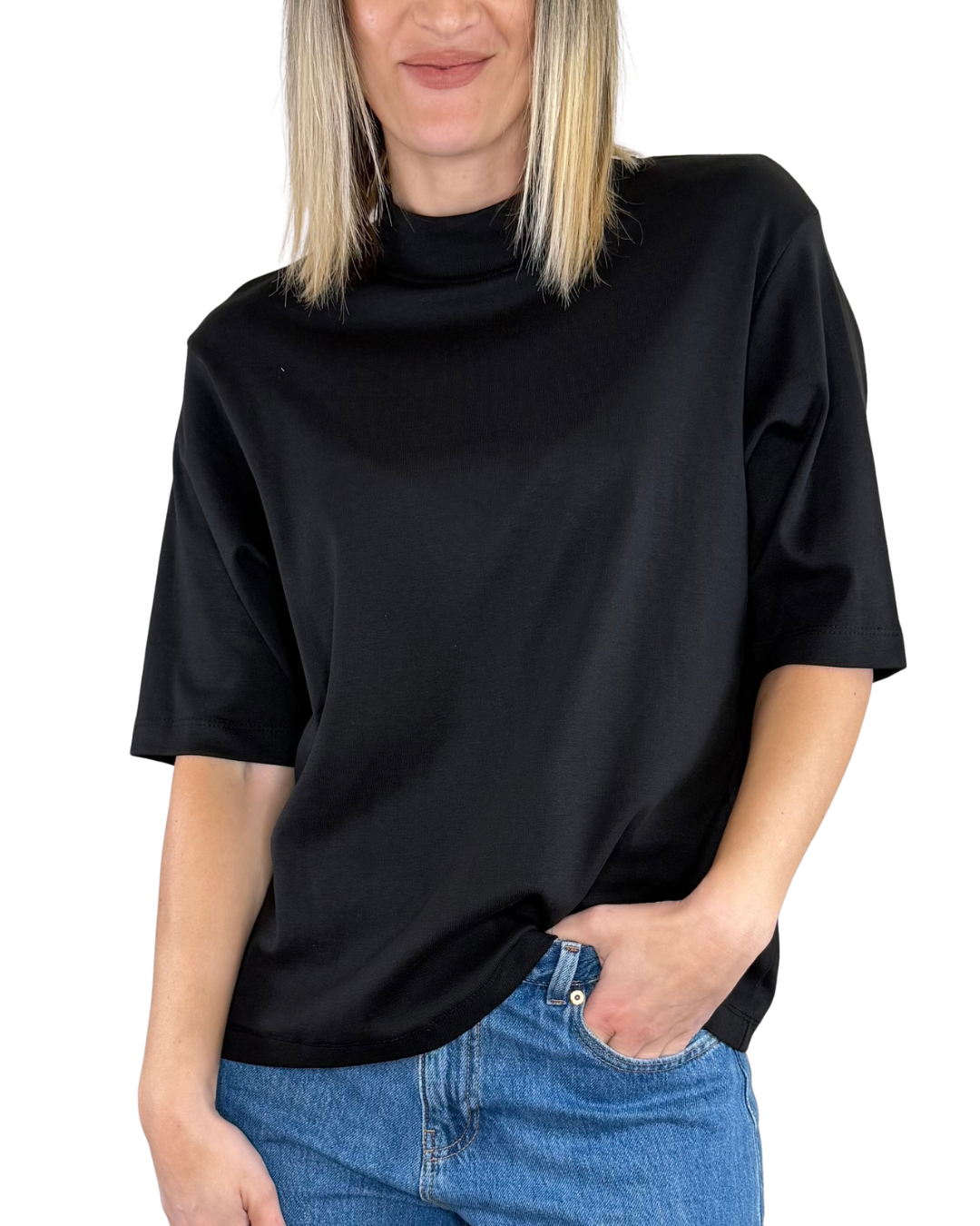 T-shirt a scatola con girocollo alto