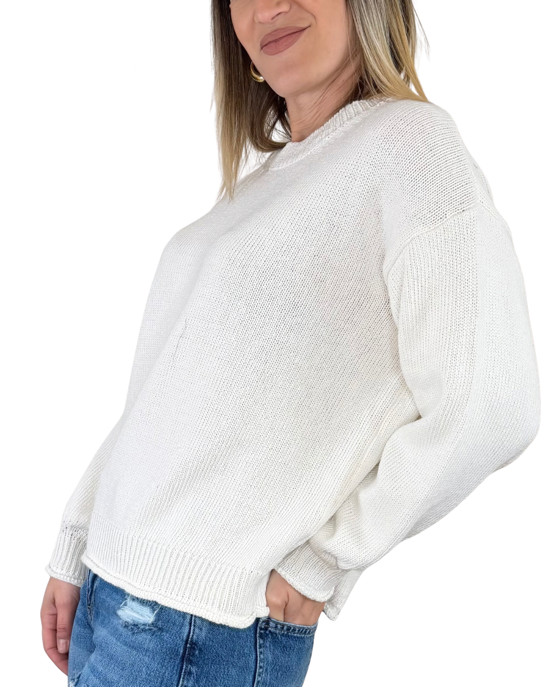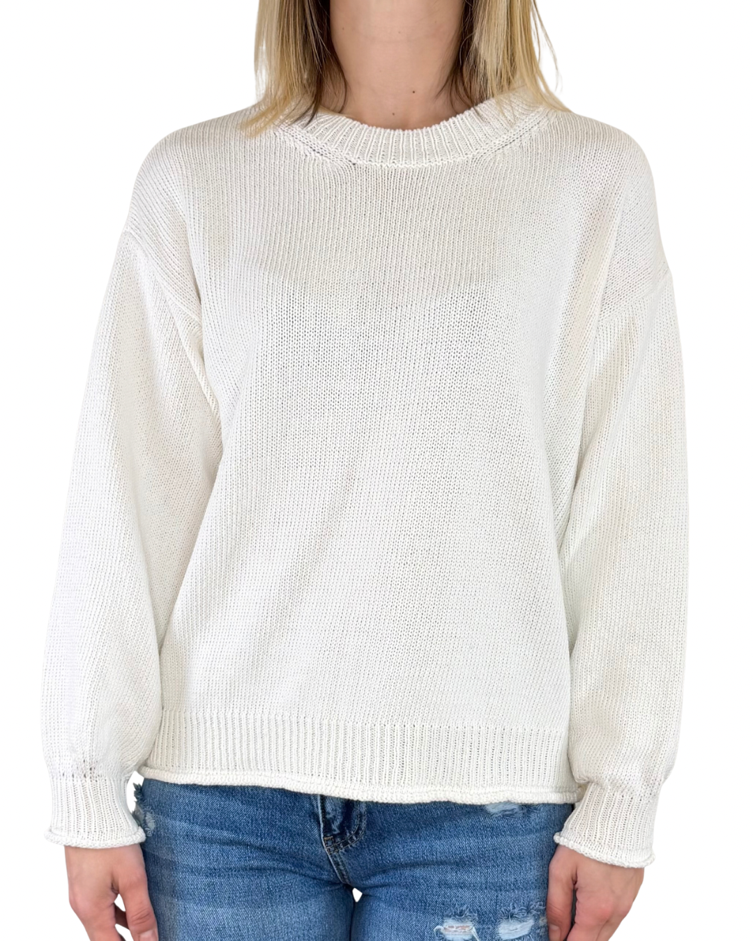 Vicolo - Maglia cotone bordi rotolino - PANNA
