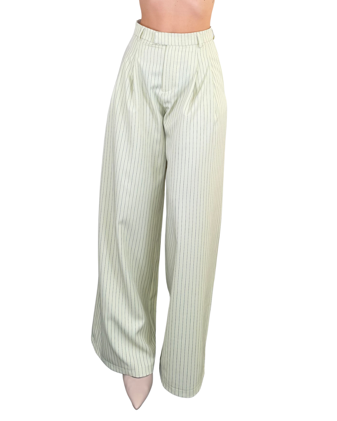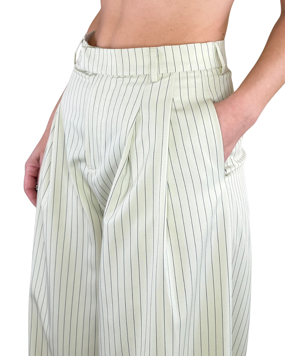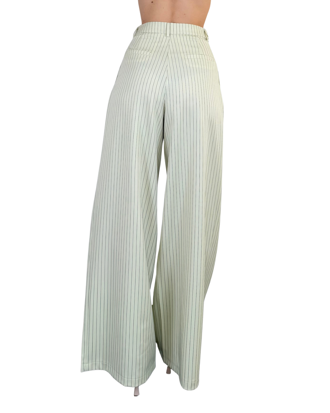 - Pantaloni palazzo con pences, tasche a filo e ribattitura interna in vita per una silhouette impeccabile