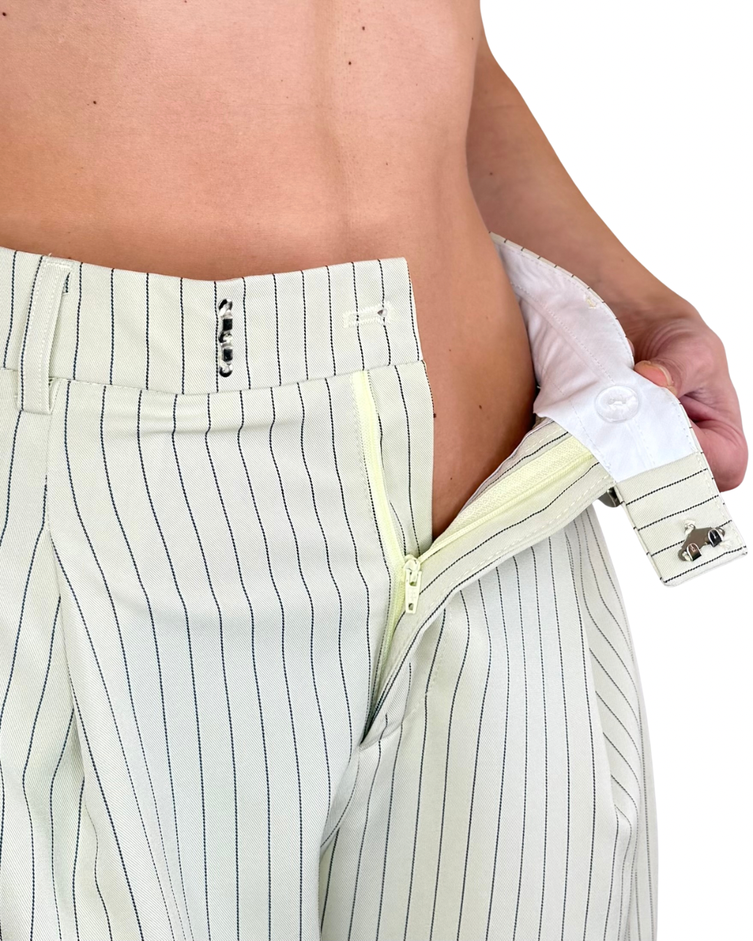- Chiusura invisibile con ganci e bottone a scomparsa per un'estetica pulita •