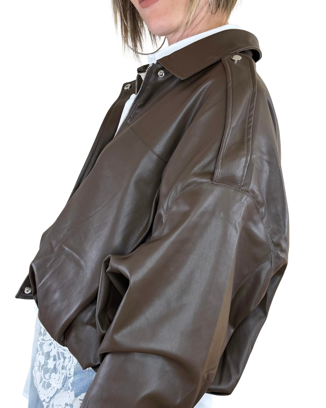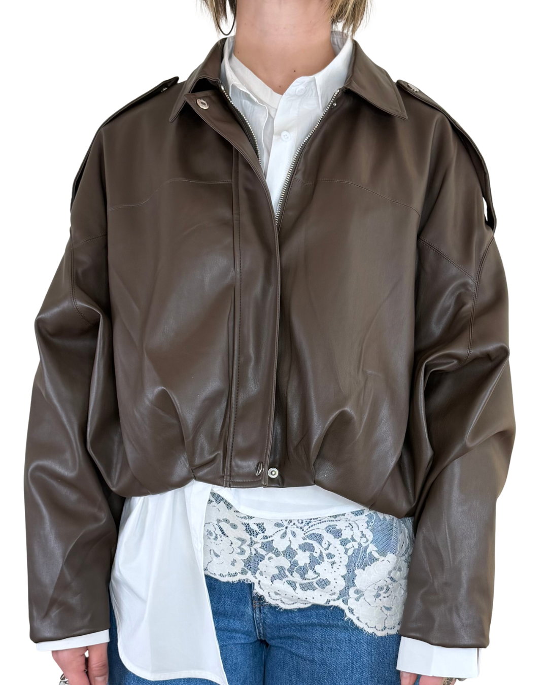 Scopri il fascino senza tempo del nostro Bomber Baloon in ecopelle — il capo che trasforma ogni momento in uno statement di stile. Morbida al tatto e sofisticata nell'estetica, questa giacca incarna il lusso accessibile che caratterizza la nostra collezione. Indossala per elevare i tuoi outfit quotidiani con un tocco di eleganza contemporanea.