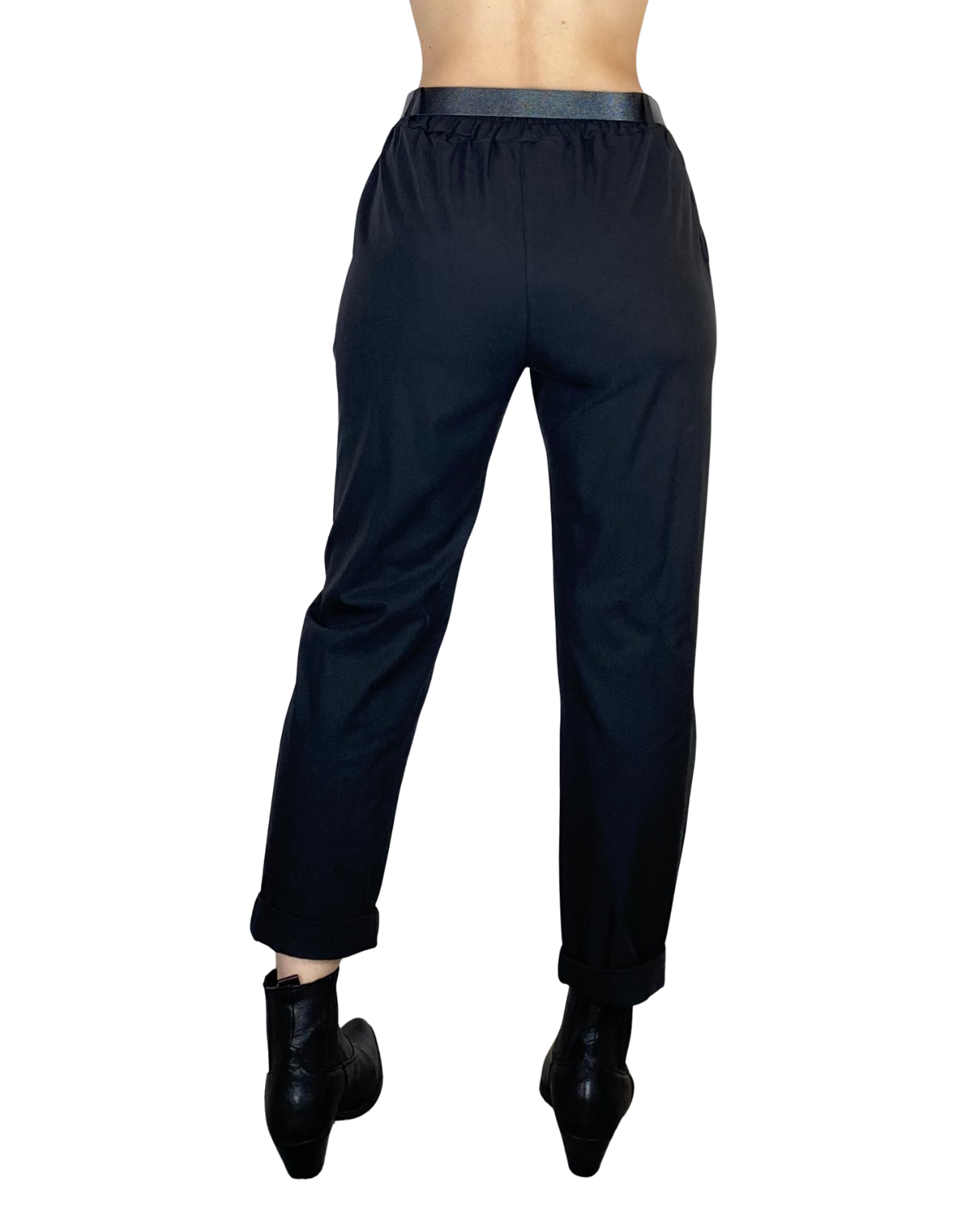 Pantalone elastico in vita con tasche alla francese e cintura