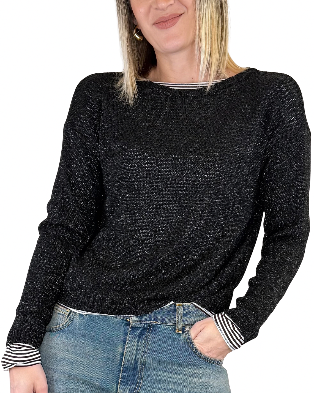 Souvenir - Maglia scatolina lurex - NERO