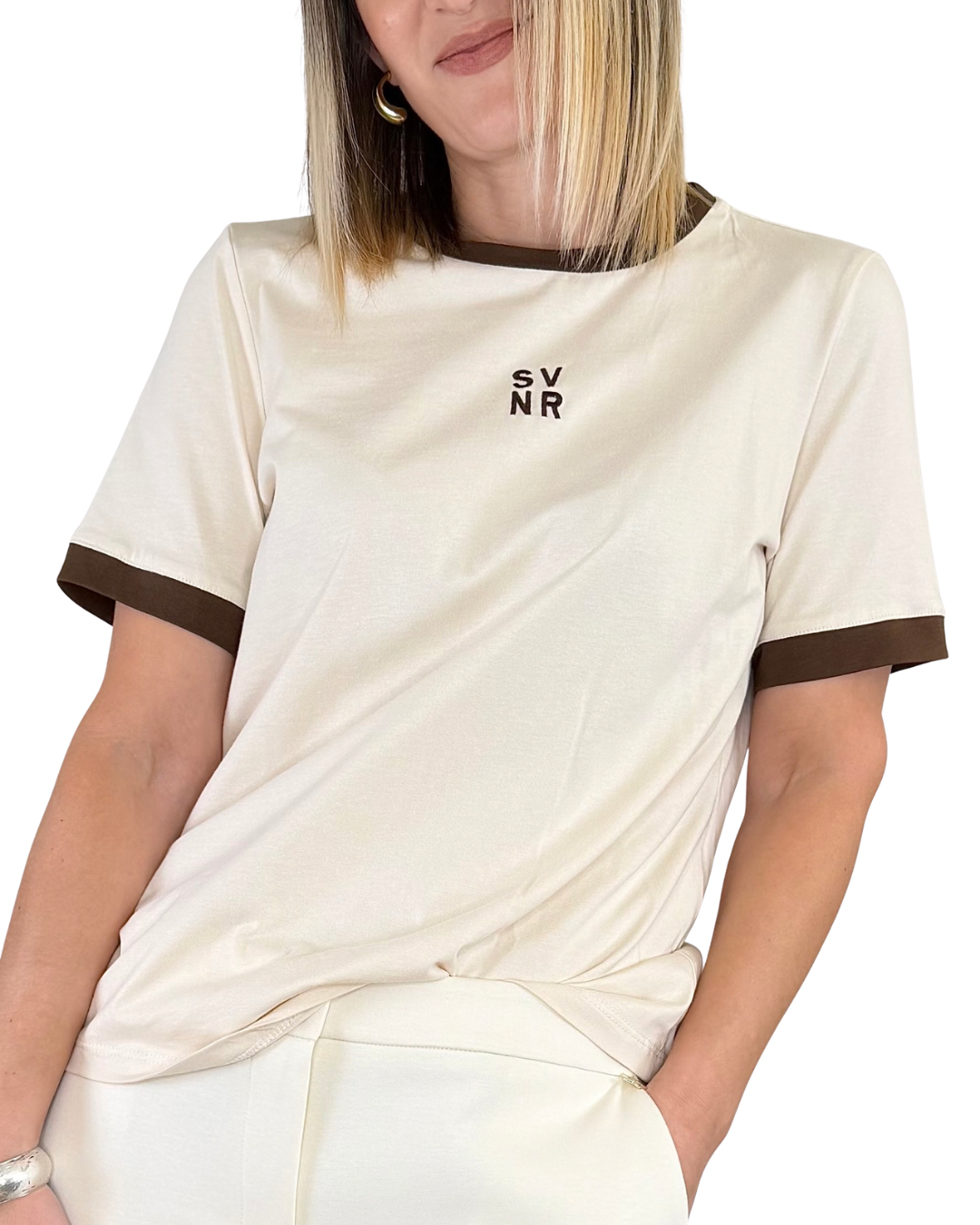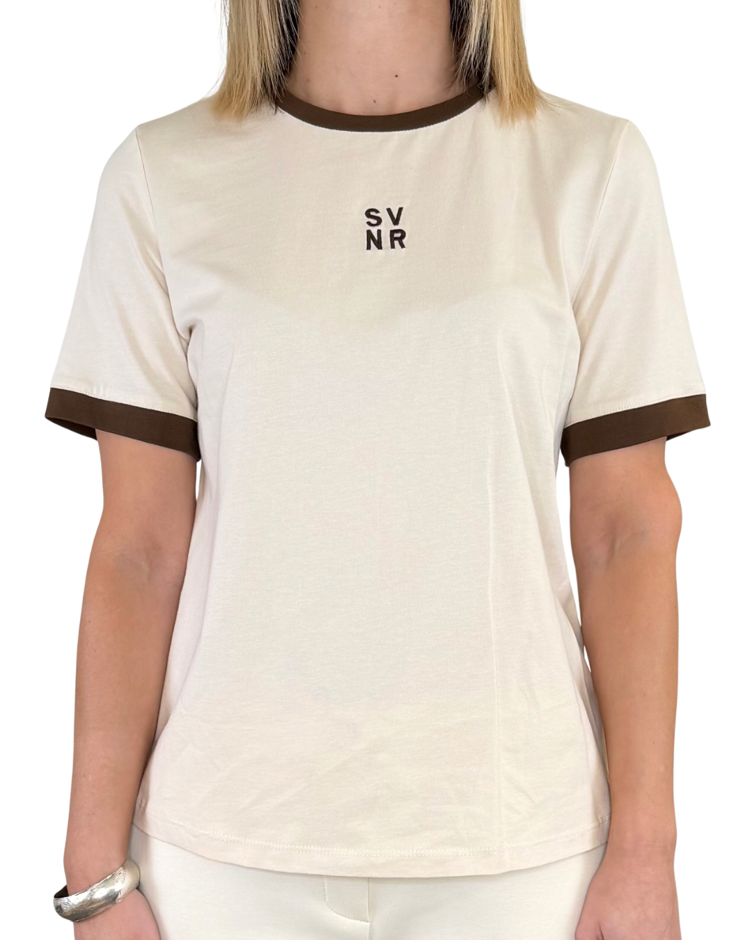T-shirt regular fit con logo ricamato e bordi a contrasto