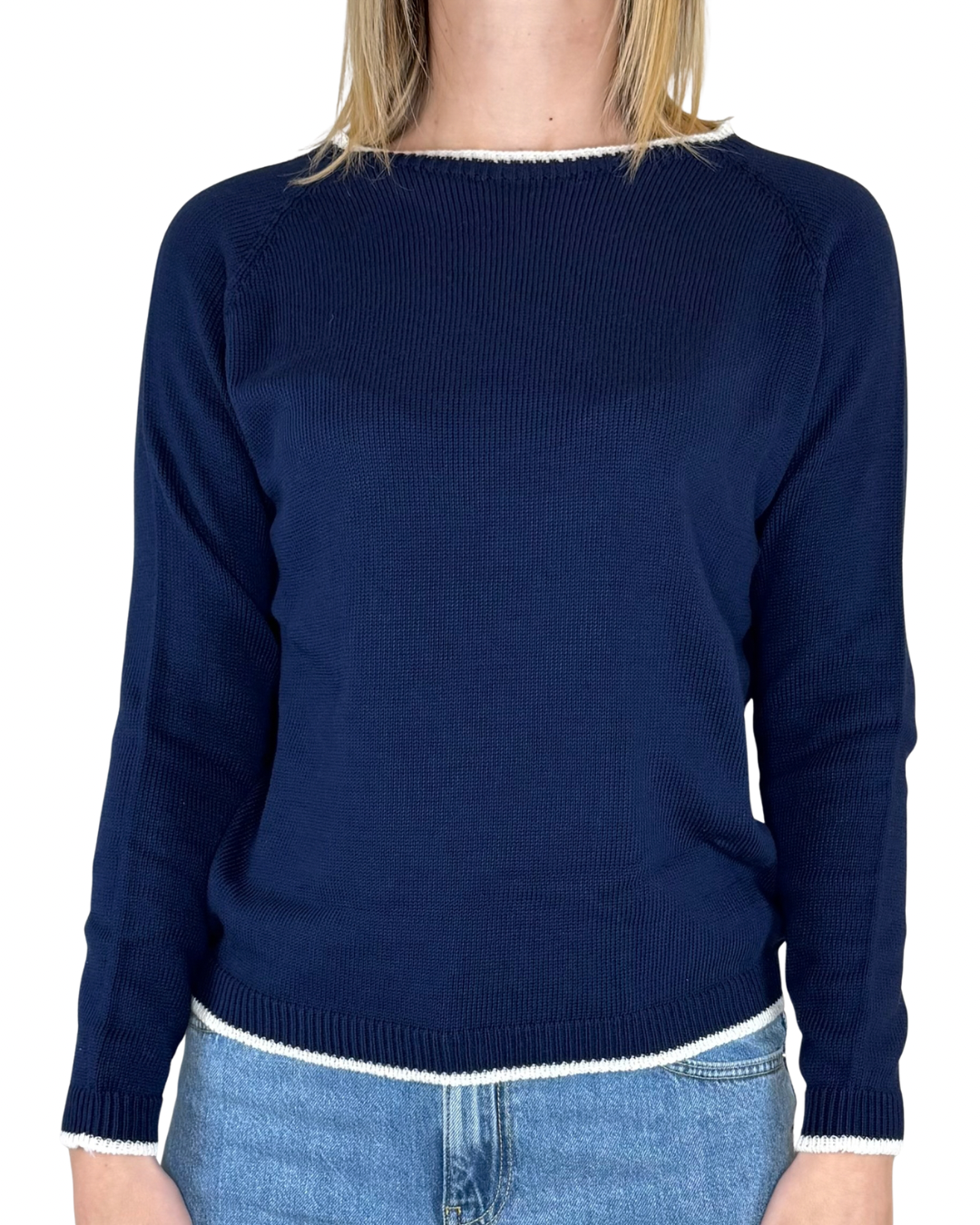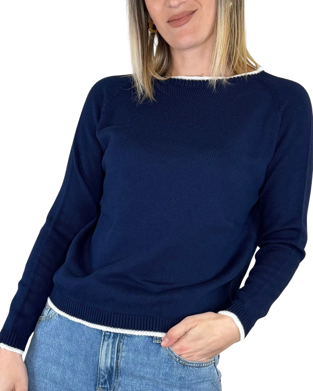 Habiti - Maglia bordino contrasto 100% cotone - BLU