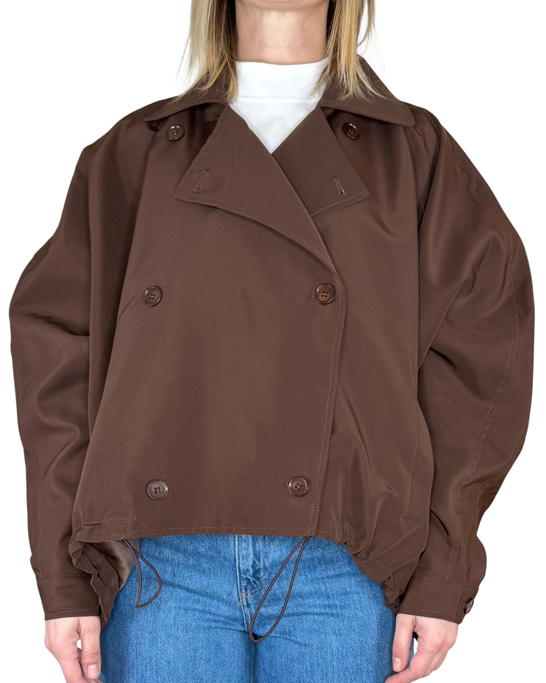 Habiti - Giacca corta doppiopetto stondata oversize - CIOCCOLATO