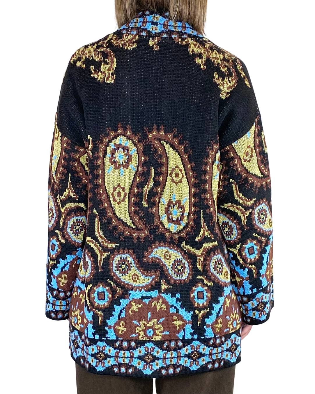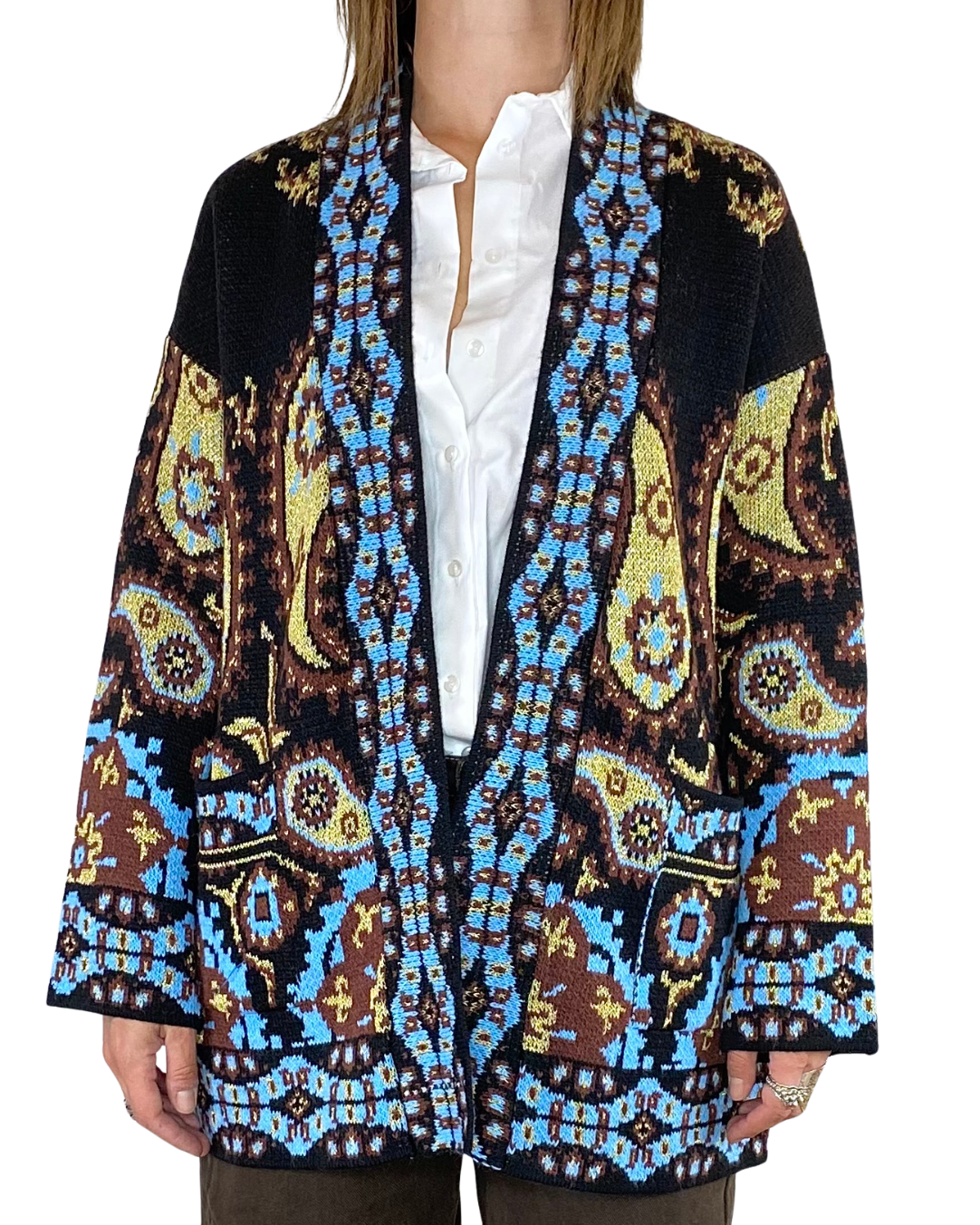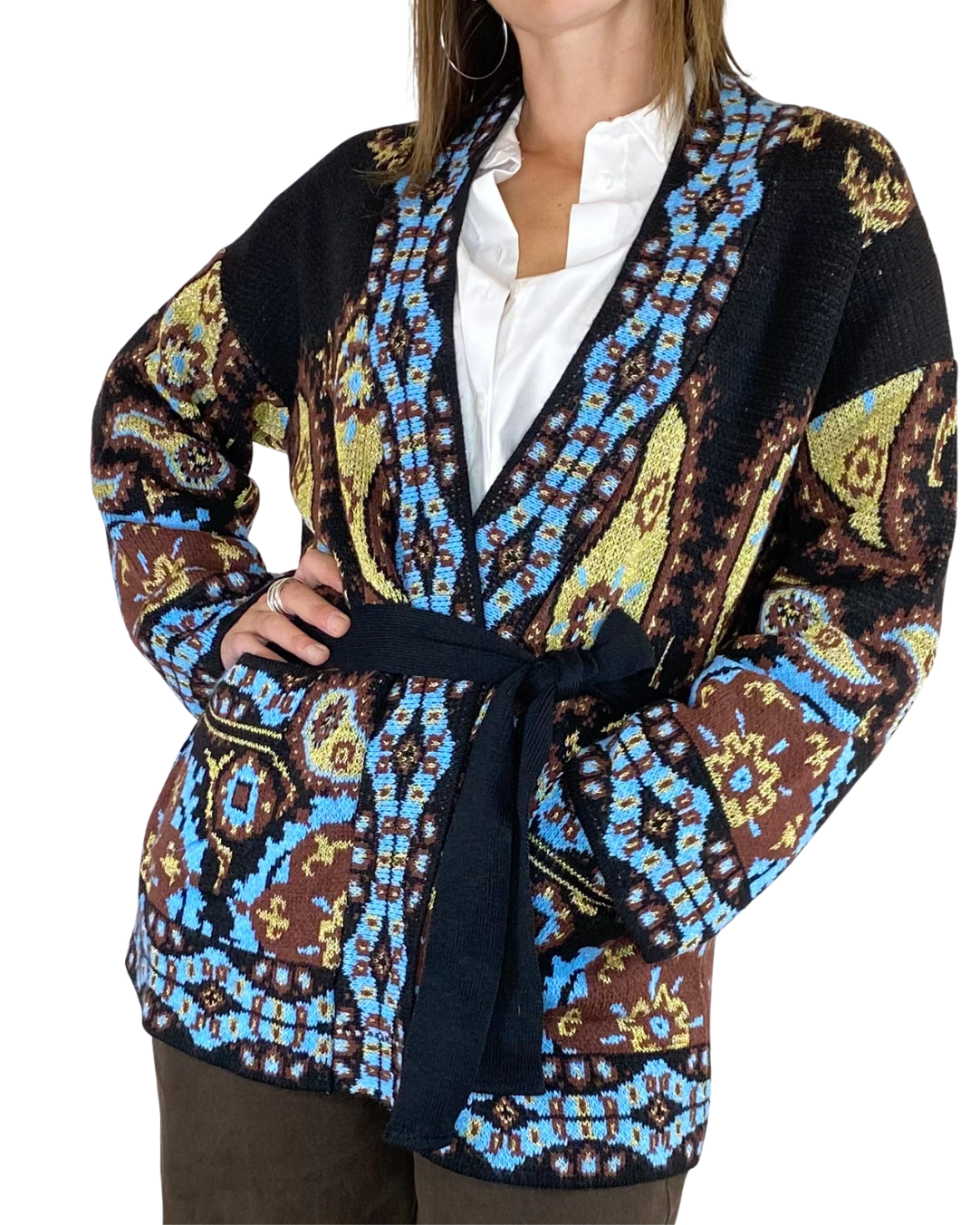 Cardigan corto etnico con tasche e cintura