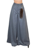 Pantalone palazzo gessato con pence tasche alla francese e coda di pelliccia