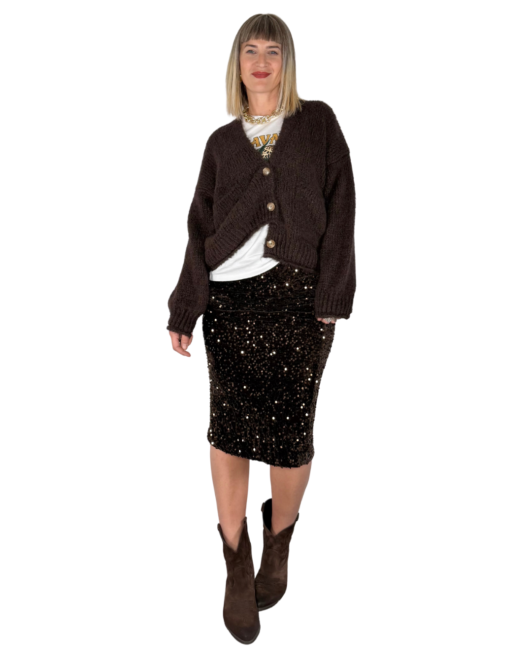 Longuette foderata in ciniglia e paillettes con elastico in vita