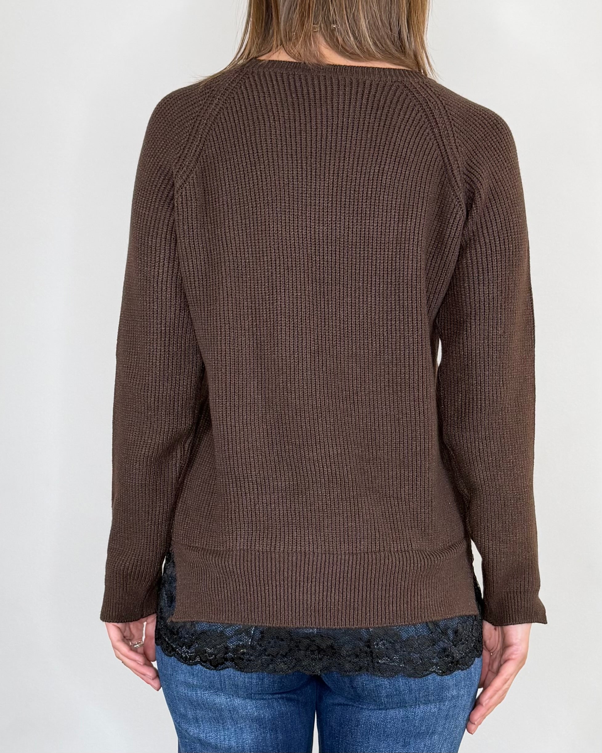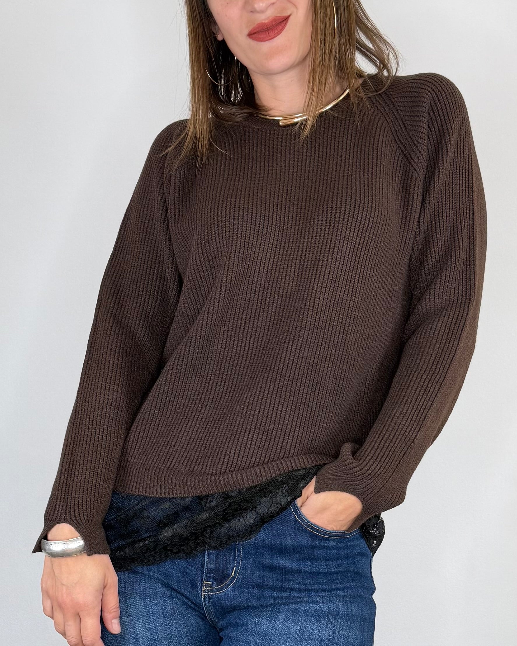 Susy Mix - Maglia punto inglese pizzo - MORO