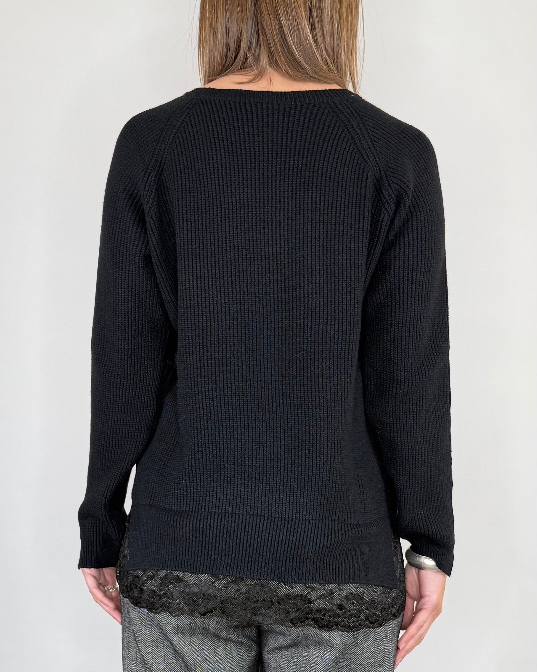 Susy Mix - Maglia punto inglese pizzo - NERO