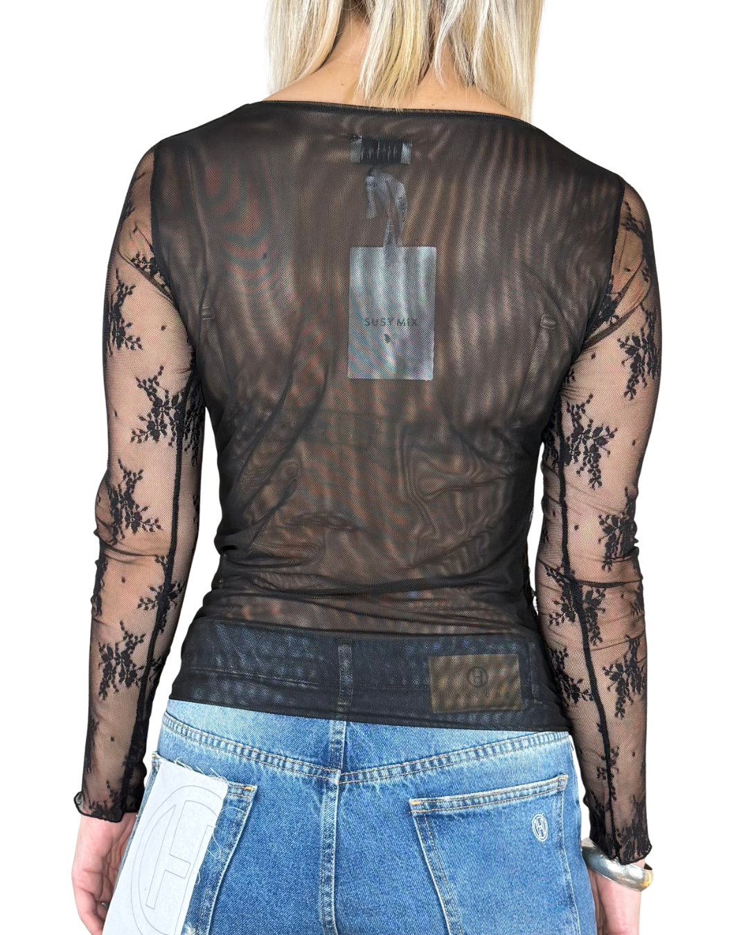 Susy Mix - T-shirt pizzo scollo madonna - NERO