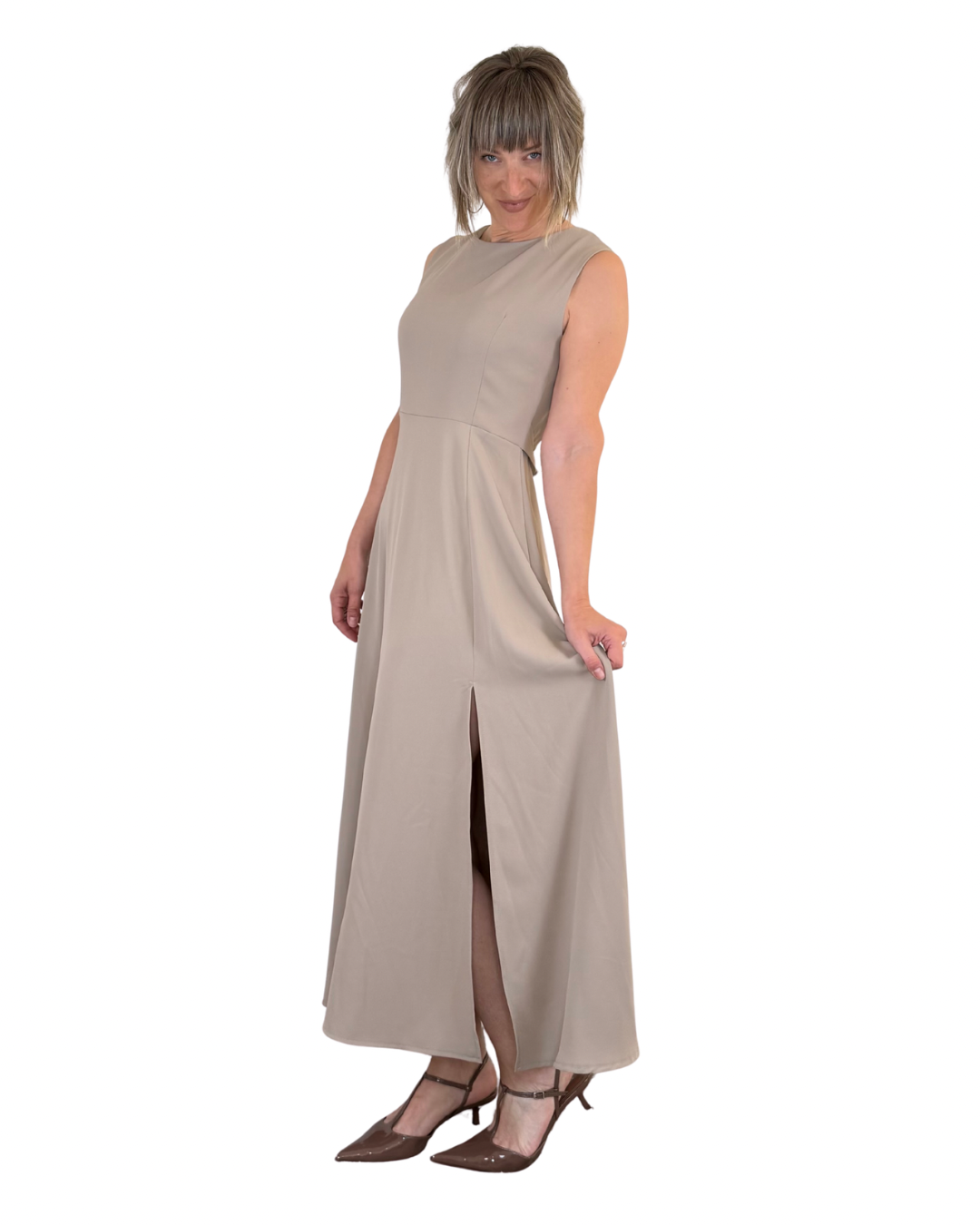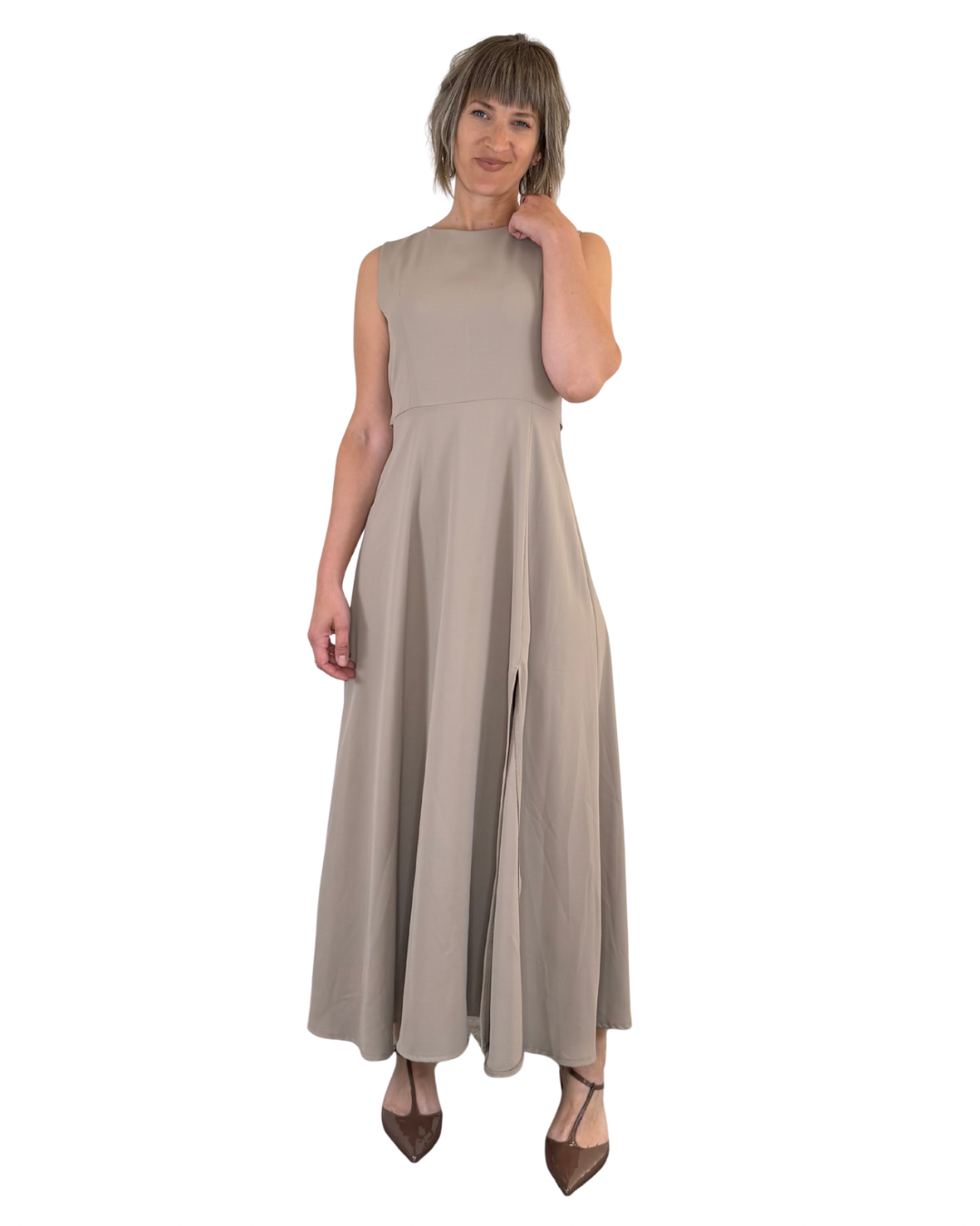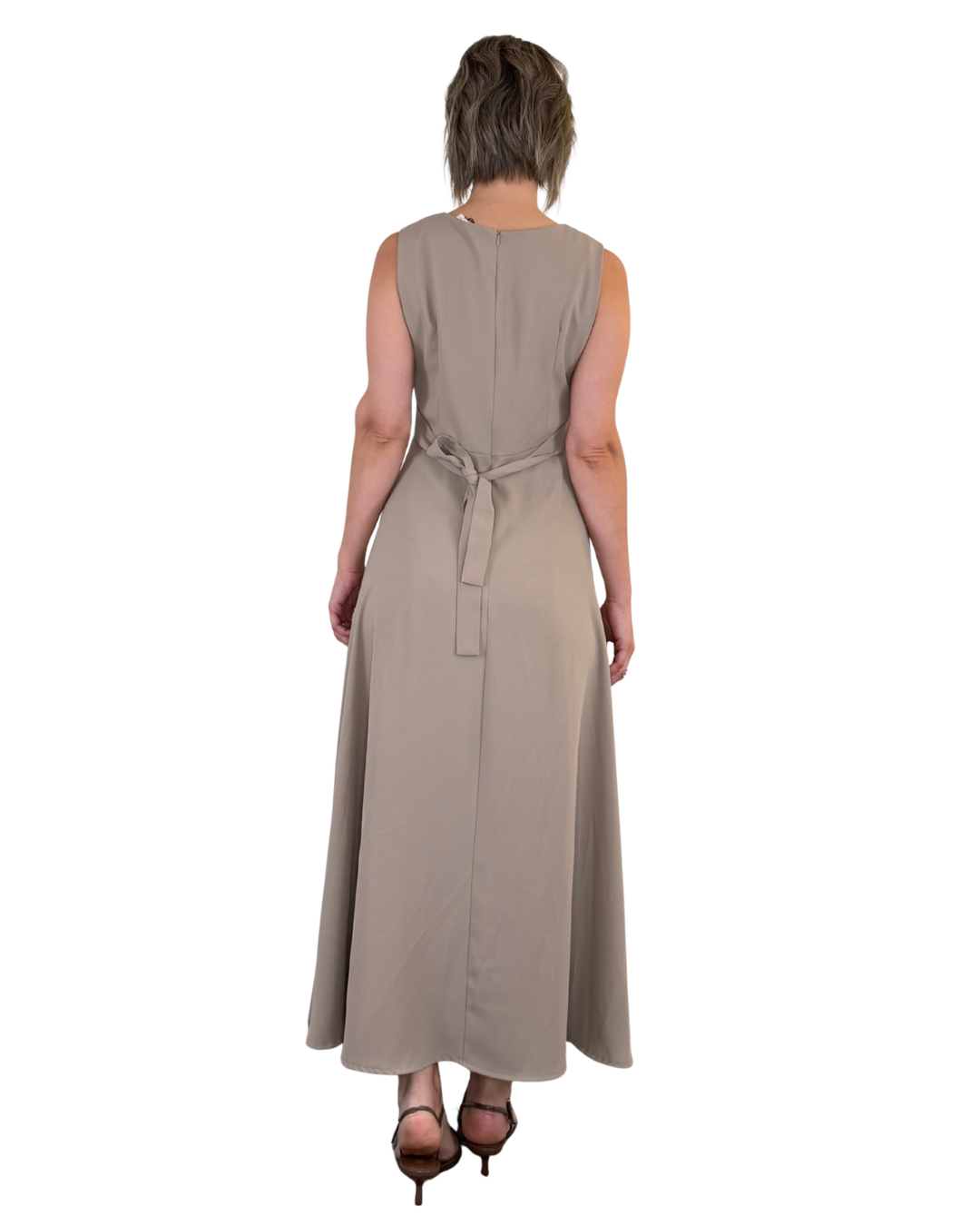 Fließendes langes Kleid, das mühelos Eleganz einfängt. Perfekt für Zeremonien und besondere Anlässe, gleitet dieses Stück sanft über die Silhouette und streckt und verlängert die Figur mit natürlicher Anmut.