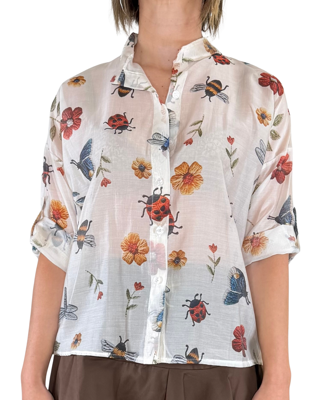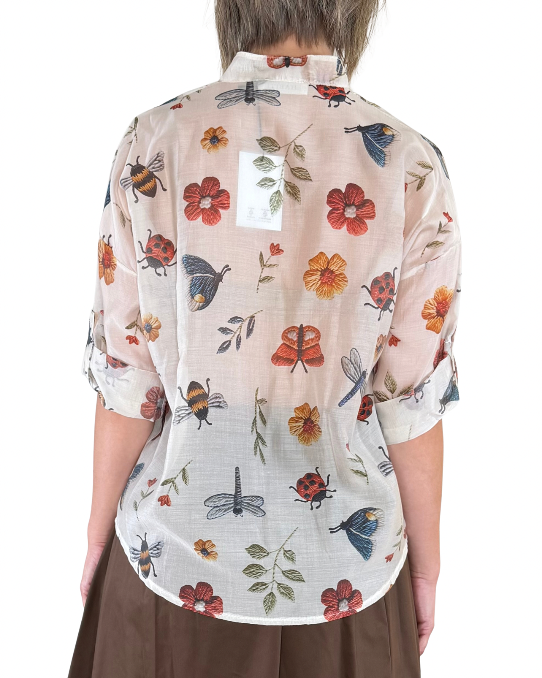Gemusterte Bluse mit Stehkragen, aus frischem und weichem Tencel-Stoff. Vielseitig und faszinierend