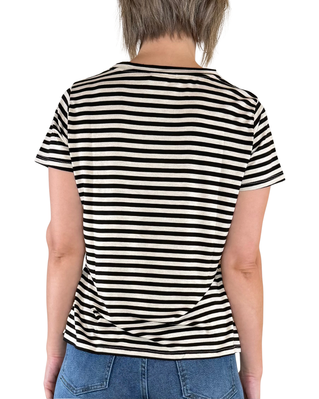 Gestreiftes T-Shirt, das perfekte Kleidungsstück, um deine Basic-Outfits mit dem gestreiften Muster, das Bewegung schafft und den Look belebt, aufzuwerten.