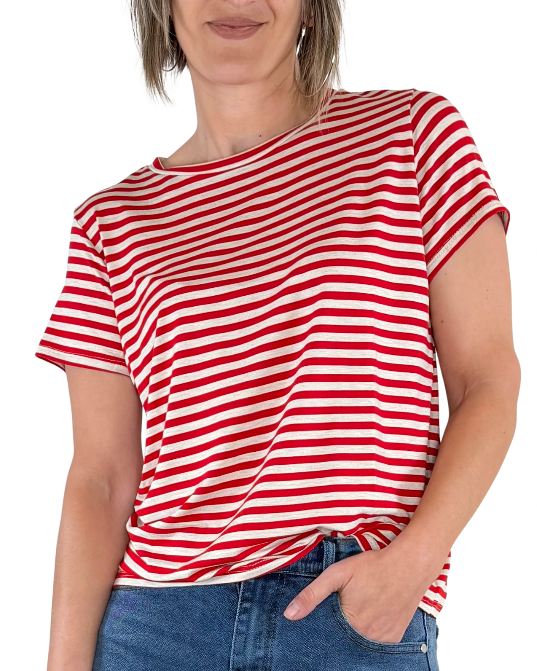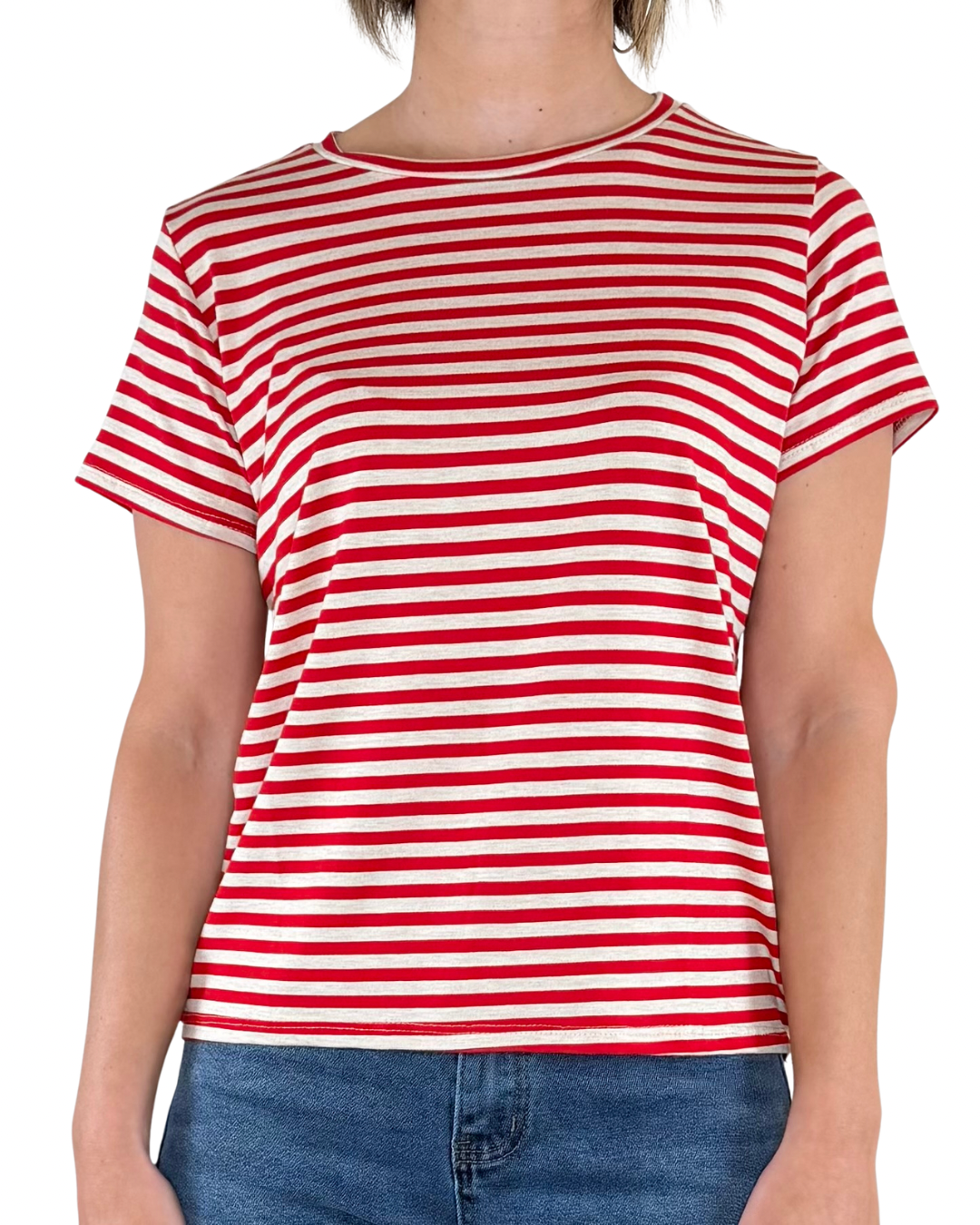 Habiti - Regular T-Shirt mit Streifen aus Viskose - ROT