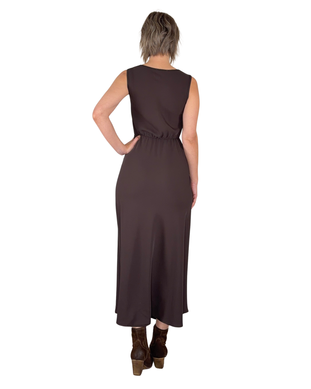 - Fließender Stoff, der sanft über die Figur gleitet und die Taille betont, ohne die Hüften zu zeichnen