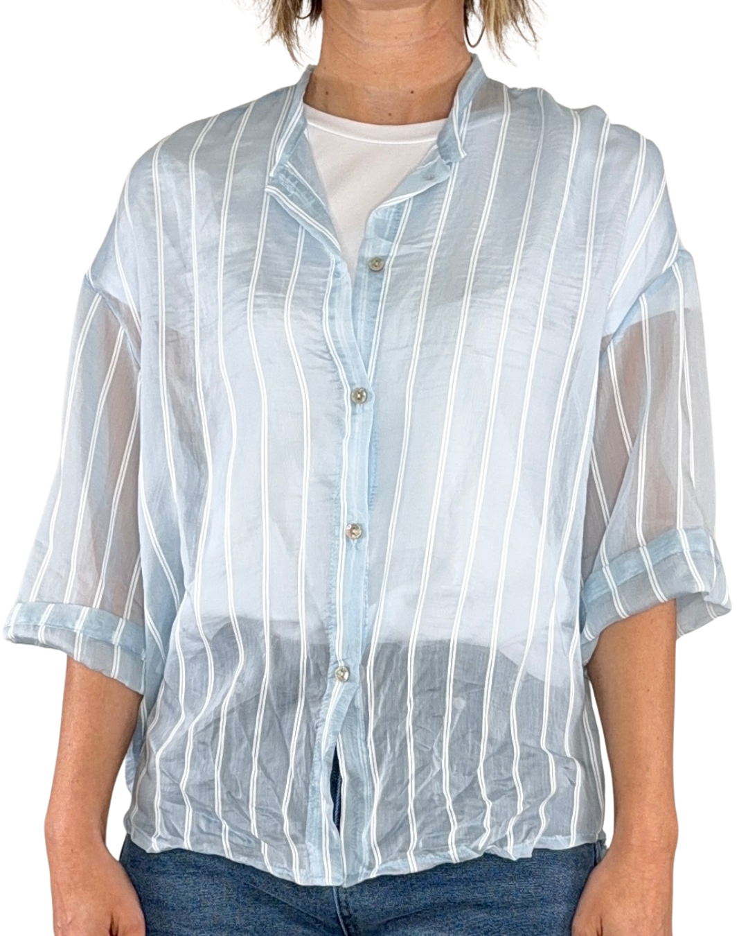 Habiti - India-Hemd mit Stäbchenmuster - HELLBLAU