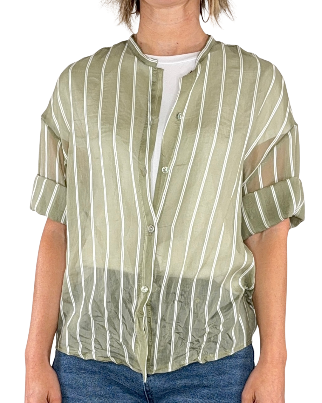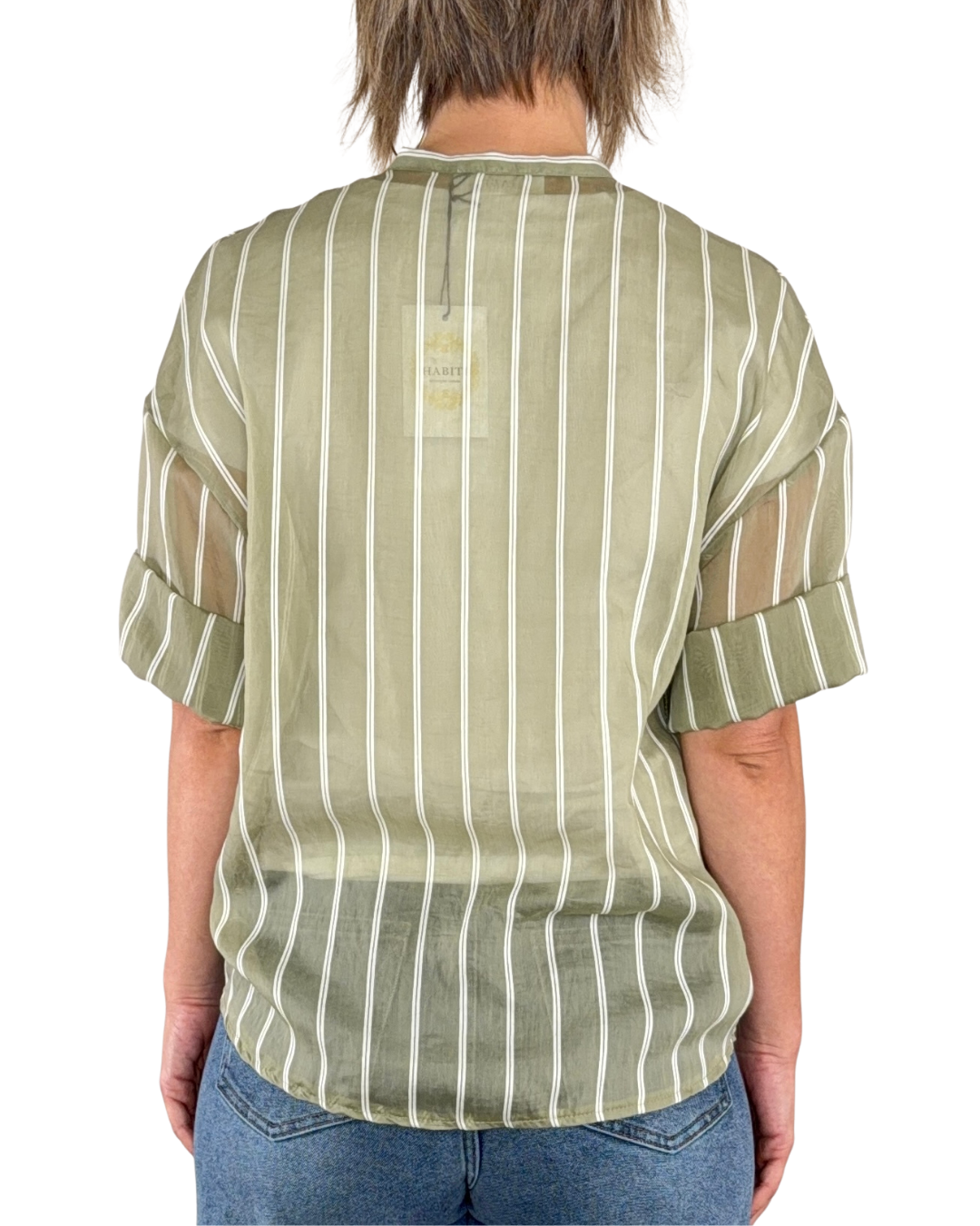 Habiti - India-Hemd mit Stäbchenmuster - MILITÄRGRÜN