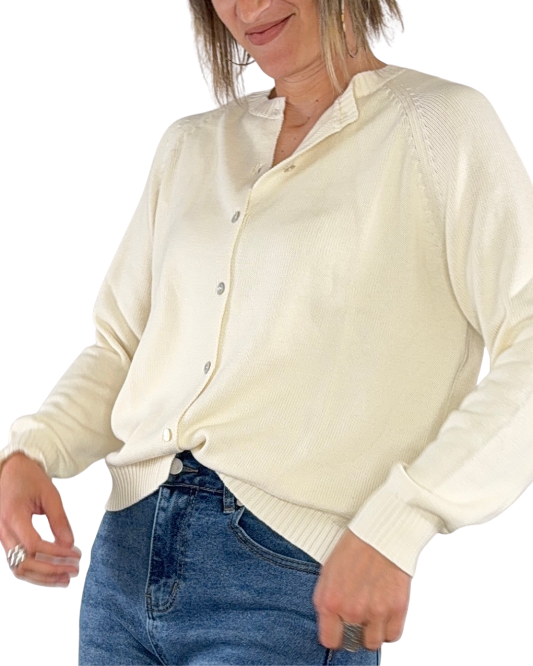 Habiti - Rundhals-Cardigan aus Baumwolle - VANILLE