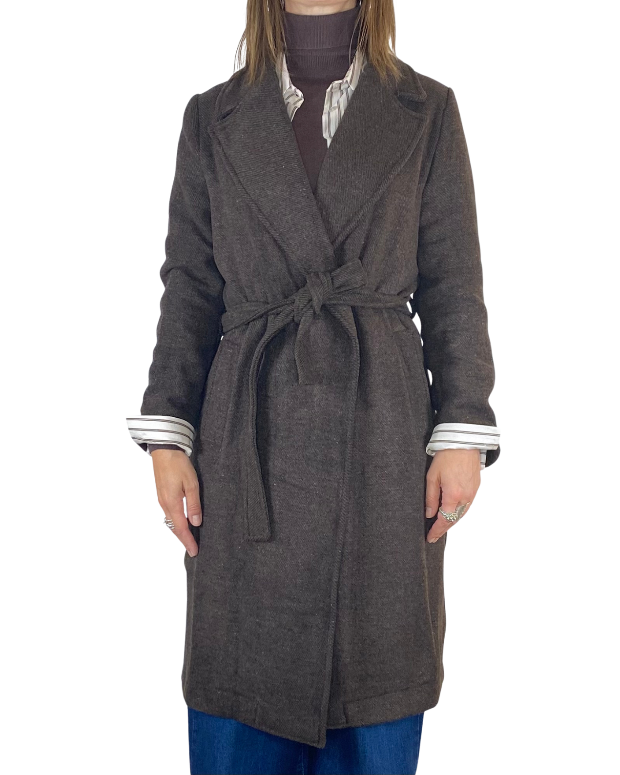 Susy Mix - Cappotto spinato a vestaglia - MORO