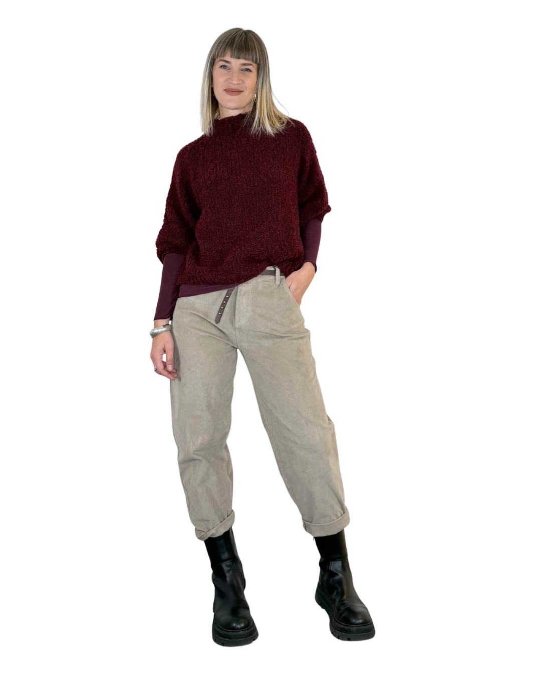 Habiti - Pantalone barrel velluto - FANGO