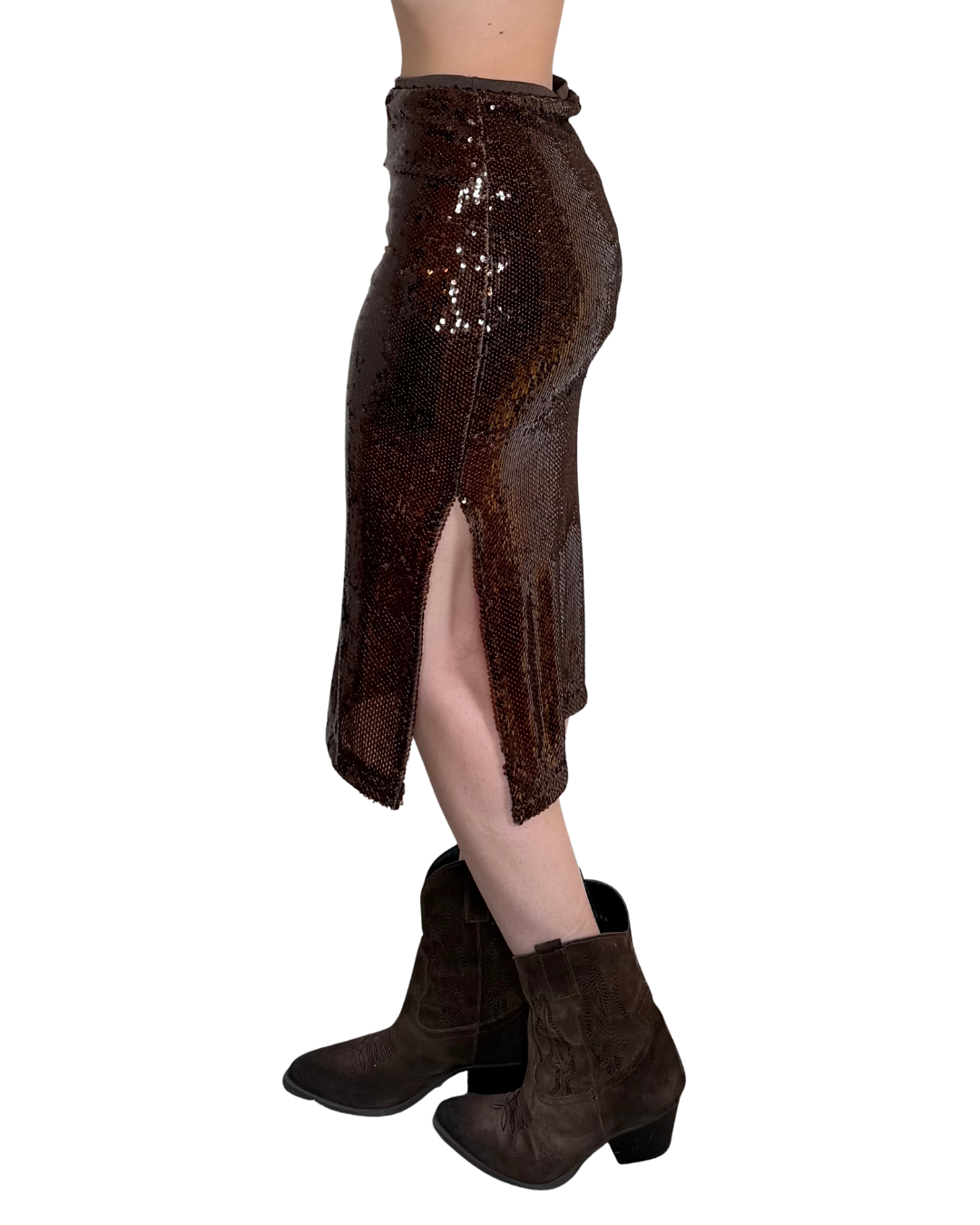 Longuette paillettes con spacco laterale ed elstico in vita