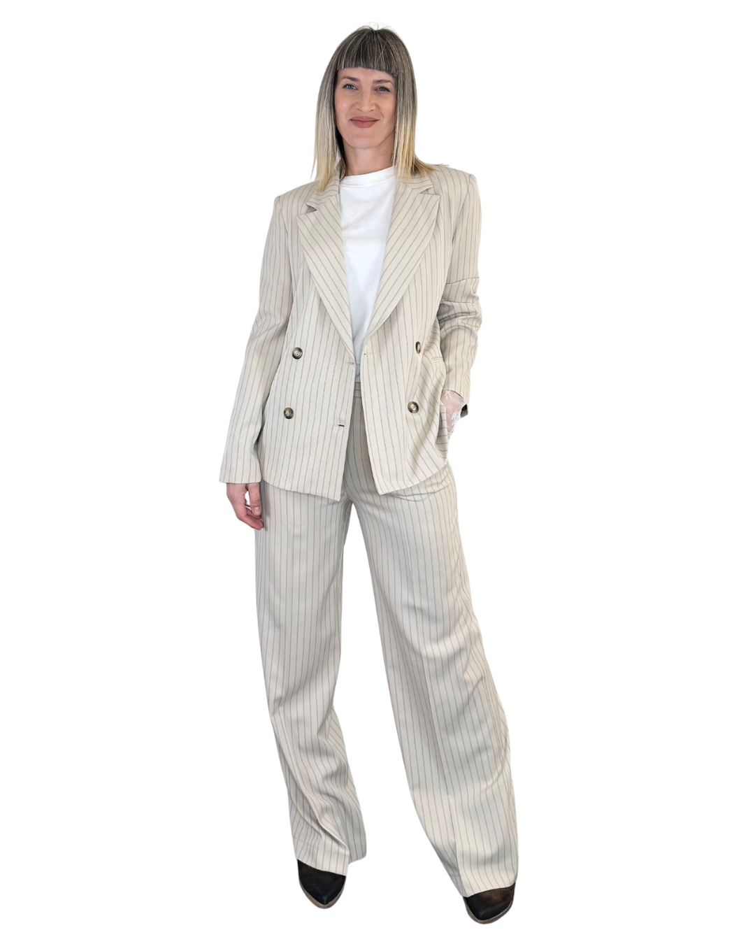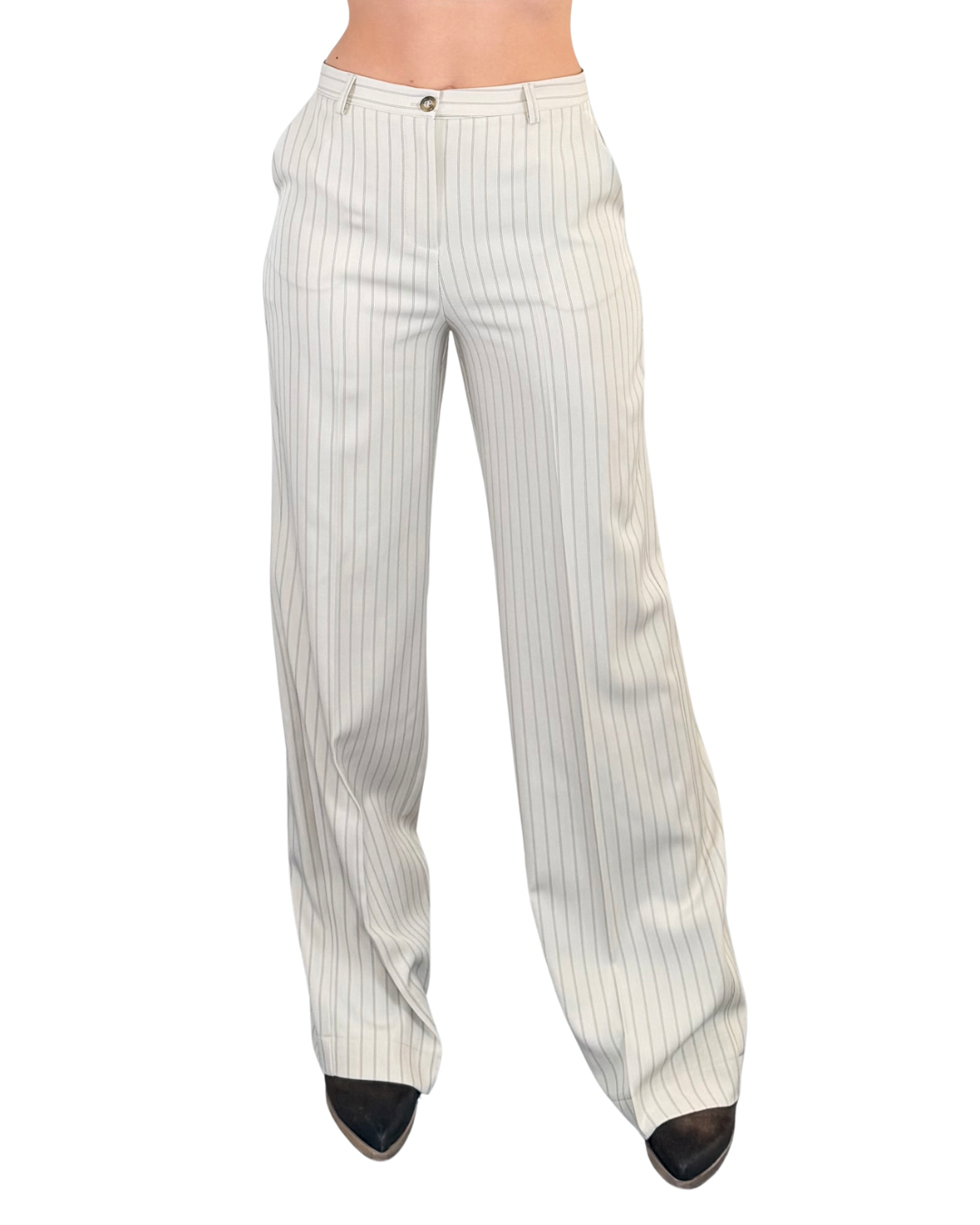 Pantalone palazzo gessato con tasche alla francese