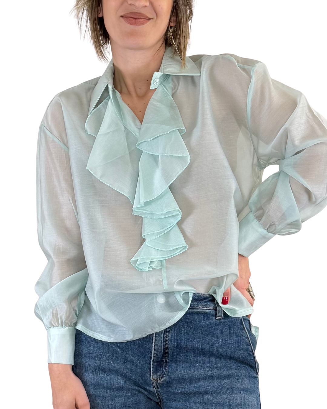 Habiti - Tencel Shirt with Ruching - MINT GREEN