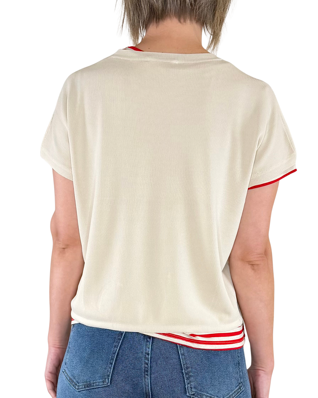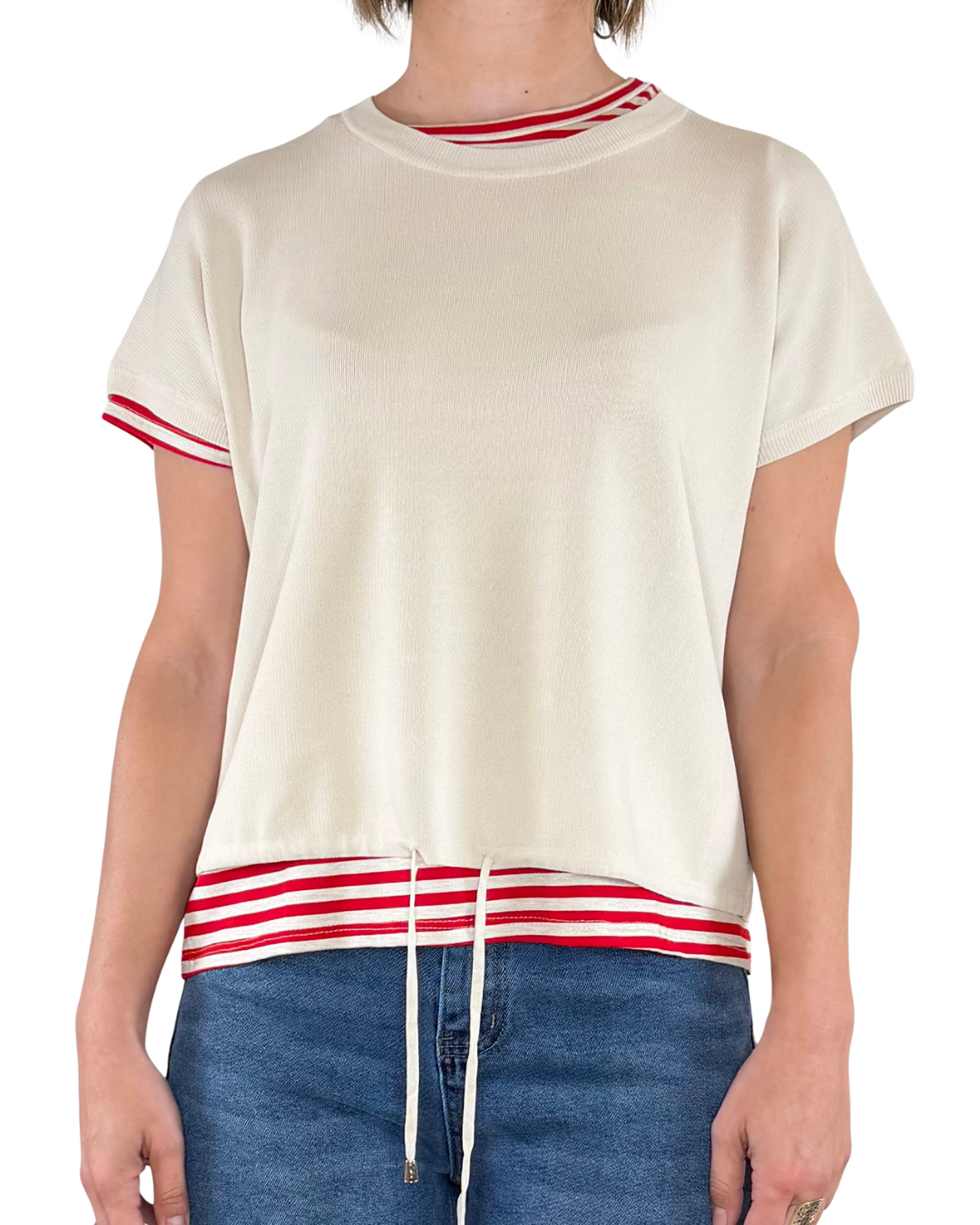 Viscose top with drawstring at the hem — the essential basic with a detail that makes a difference.