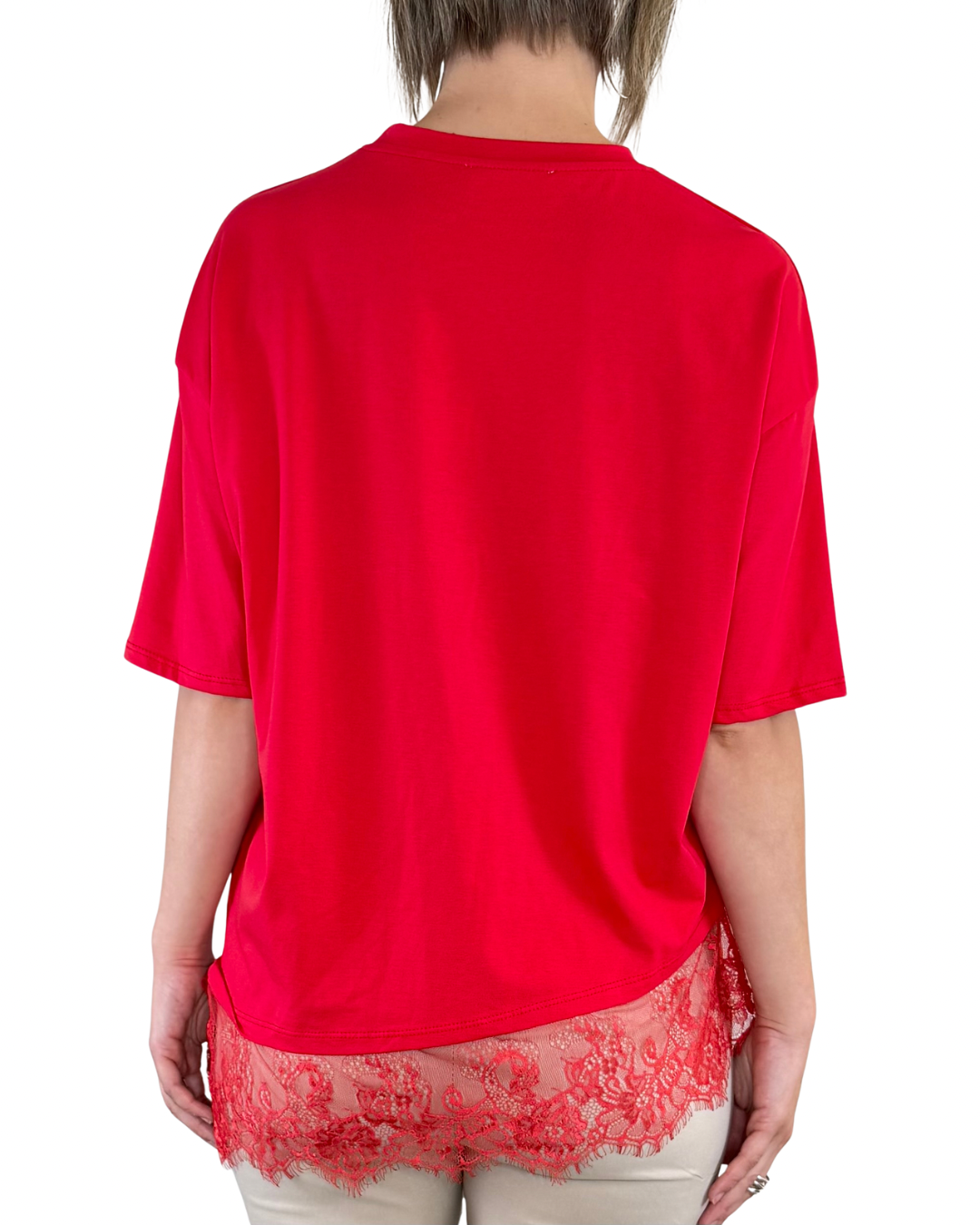 Camiseta con corte oblicuo y encaje con abertura lateral, la prenda perfecta para elevar incluso un look básico.