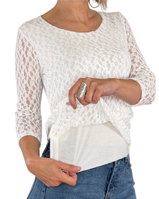 Habiti - T-shirt en dentelle manches 3/4 - BLANC