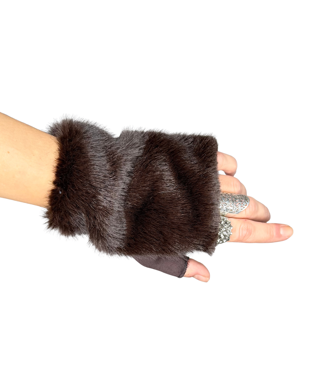 Habiti - Guanti senza dita ecopelliccia - MORO