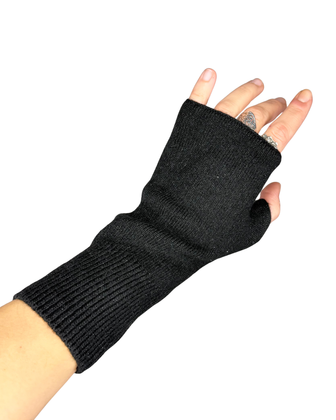 habiti - guanti senza dita misto cachemire - nero