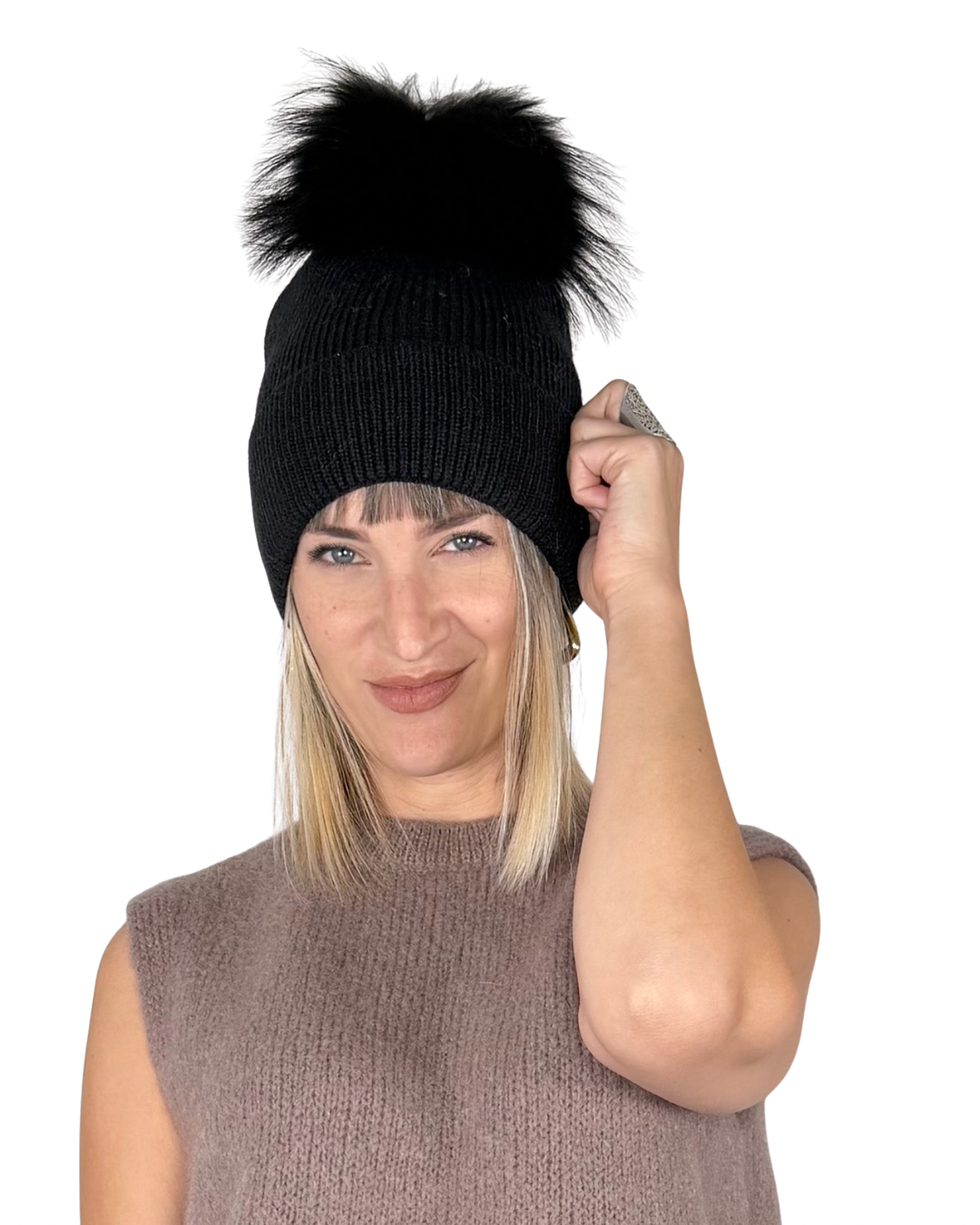 Habiti - Berretto pon pon ecopelliccia - NERO