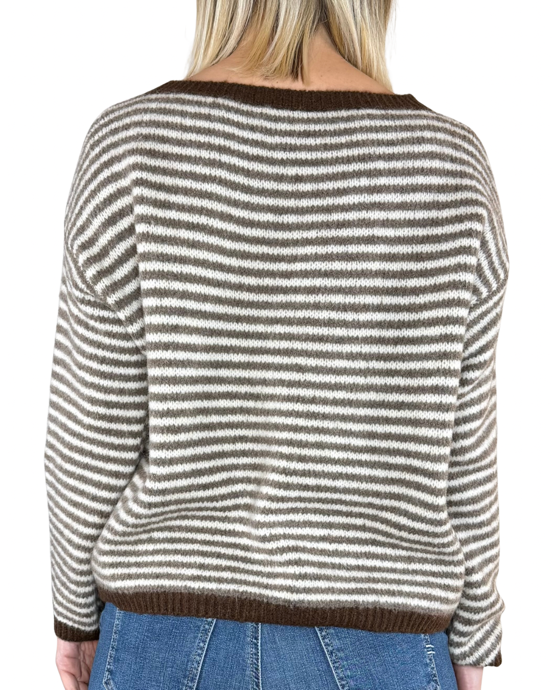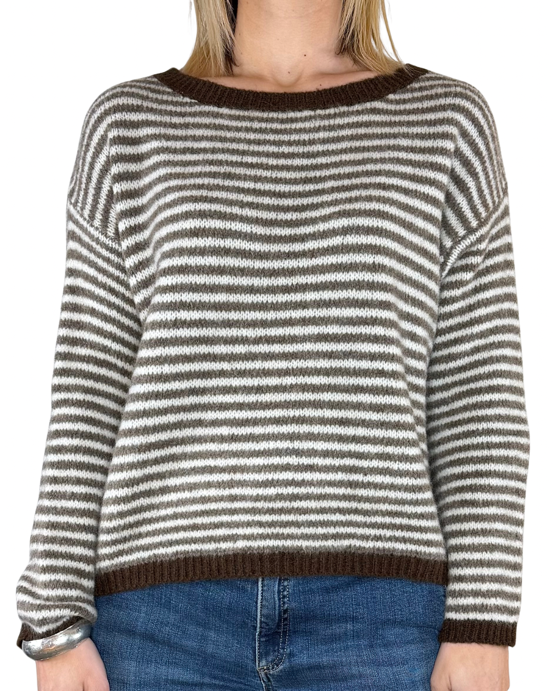 Habiti - Maglia righe bordi a contrasto - FANGO