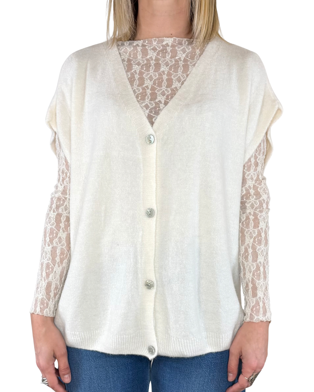 CADì - Gilet over misto alpaca - PANNA