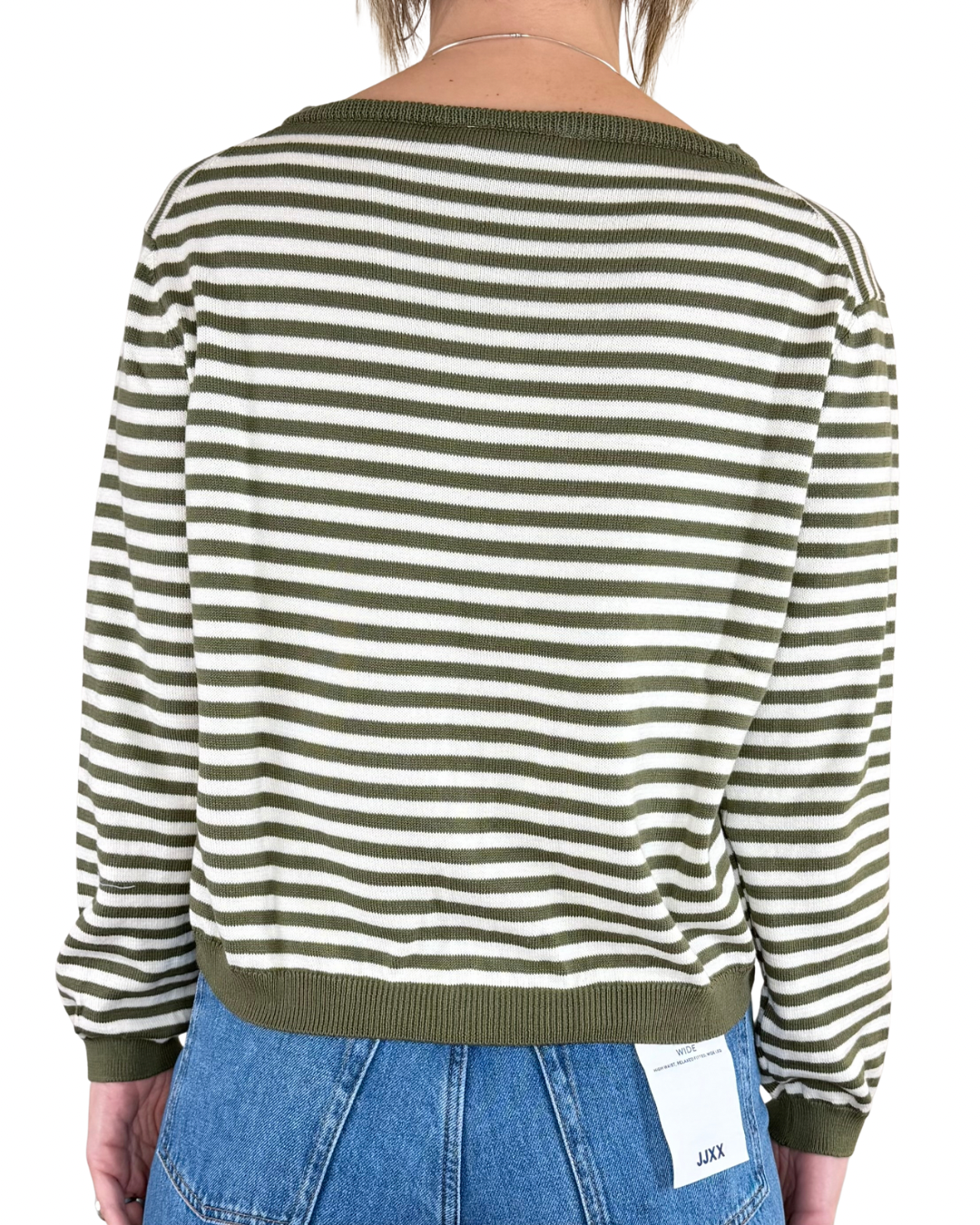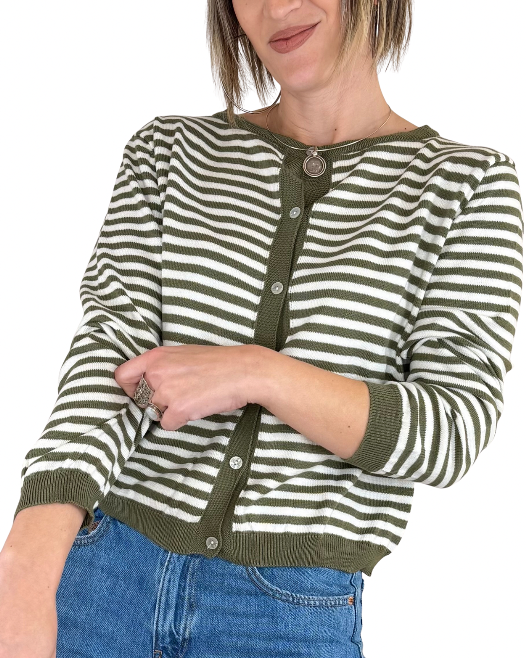 Habiti - Cardigan girocollo righe 100% cotone - VERDE MILITARE